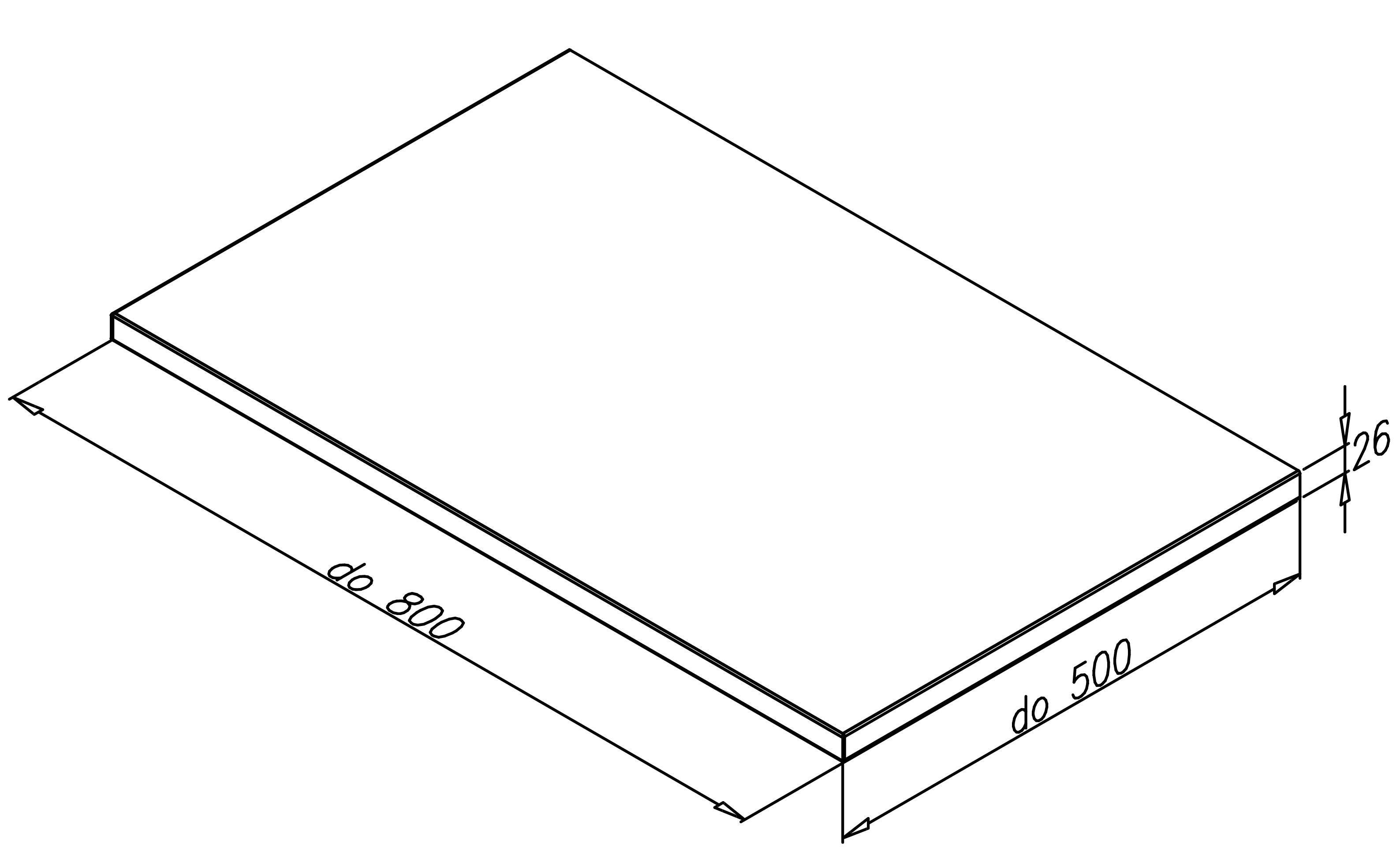 Rozmerovo upraviteľná doska z lakovanej MDF, resp. z HPL+ MDF v dekor variante. Otvor na umývadlo a batériu je v cene. Doska nie je samonosná, treba ju podoprieť.