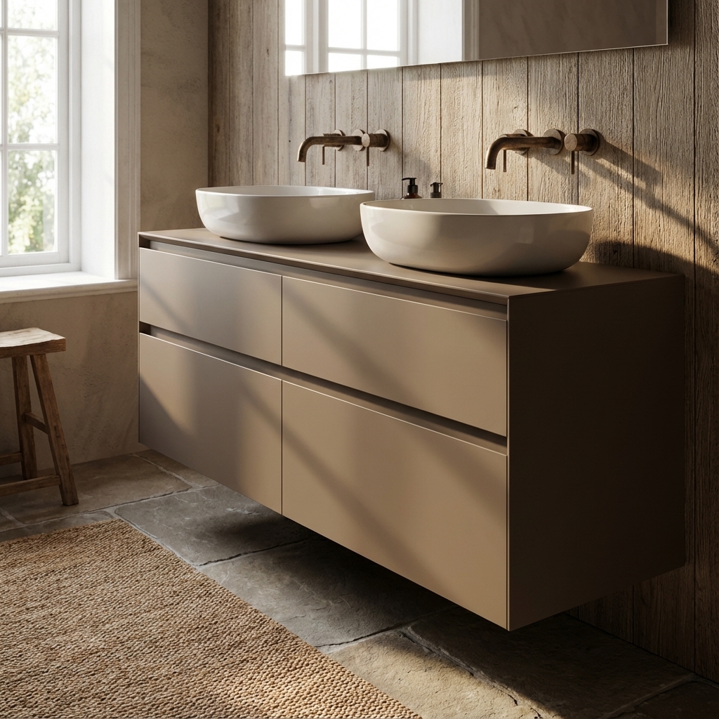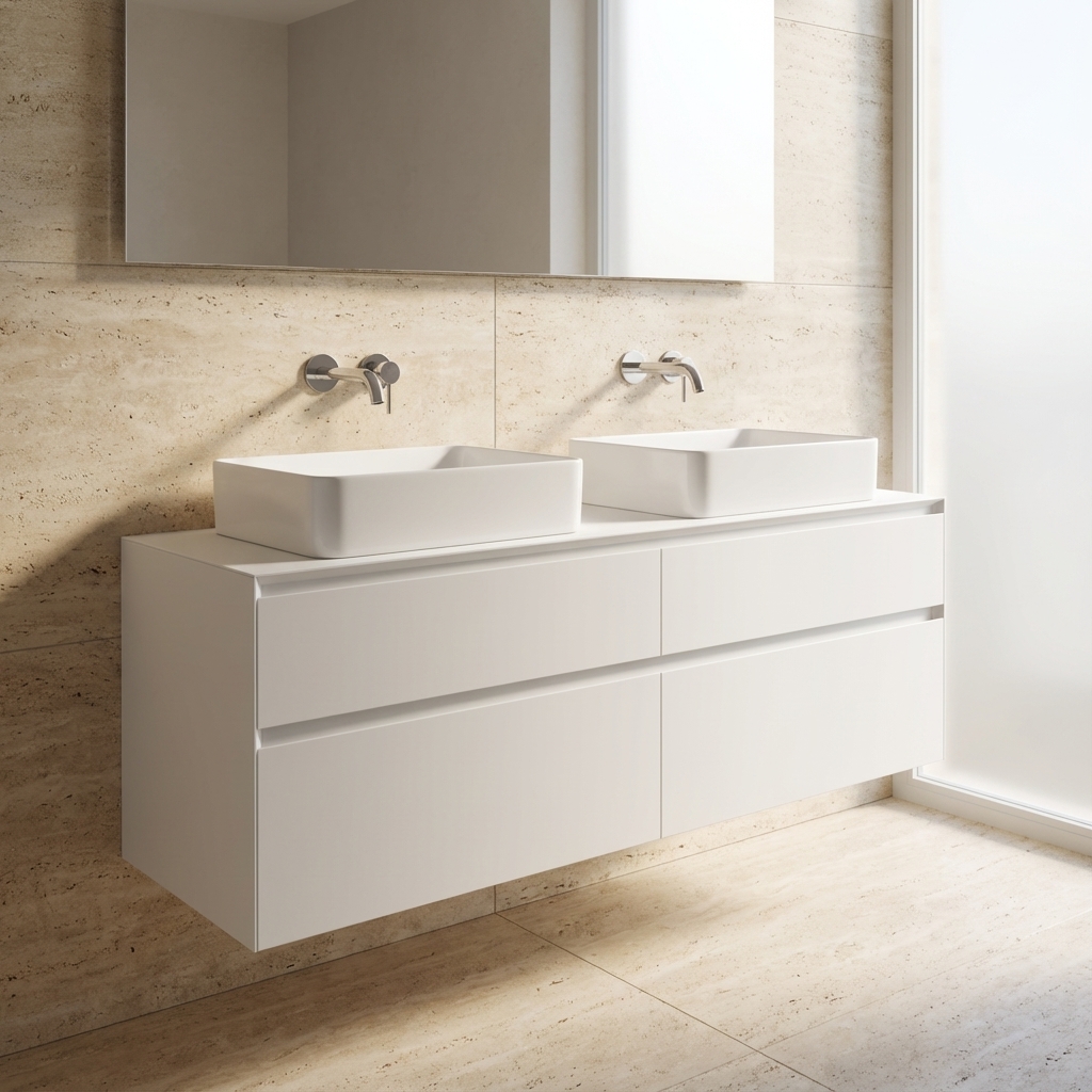 - Šírka: 1500 mm – ideálna pre široké umývadlá