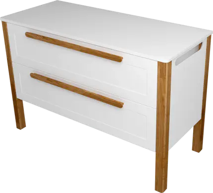 Skrinka je vyrobená z kvalitných materiálov od renomovaných dodávateľov z Rakúska, Nemecka a Slovenska, čo zaručuje dlhú životnosť a odolnosť. Hrany sú olepené ABS hranou so špeciálnym PUR lepidlom, ktoré zabraňuje prenikaniu vlhkosti. Kvalitné nemecké a talianske laky zabezpečujú odolnosť povrchu voči poškriabaniu a vlhkosti.