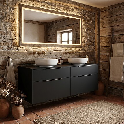 Pre výrobu otvorov na umývadlo a batériu upresnite výrobcu/obj. číslo umývadla a batérie a ich polohu na hornej doske a ich polohu voči sebe (batéria za umývadlo na stred/vľavo/vpravo).