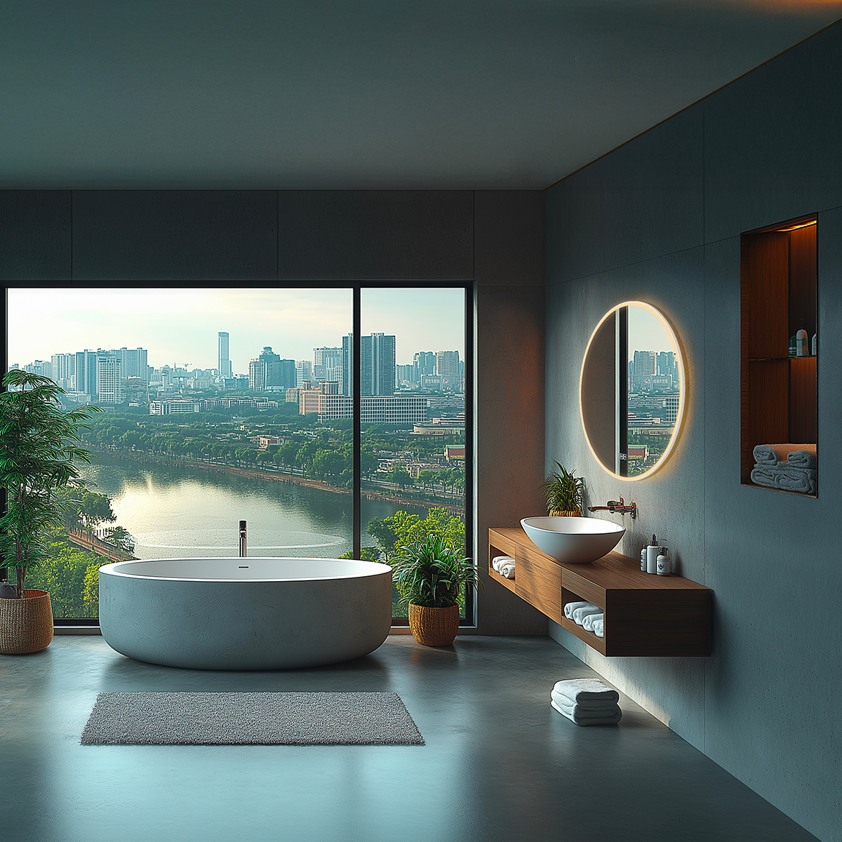 Kulaté zrcadlo s rámem a s celoobvodovým podsvícením pro dokonalé a rovnoměrné osvětlení.