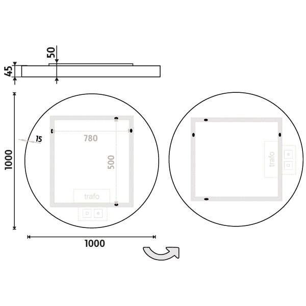 Pro dosažení kvalitního a rovnoměrného svícení je použit akrylový difuzor, který zajišťuje měkký a harmonický rozptyl světla bez viditelných bodových zdrojů. LED diody jsou vkusně integrovány do rámu spolu s difuzorem, což přispívá k elegantnímu a čistému vzhledu zrcadla.