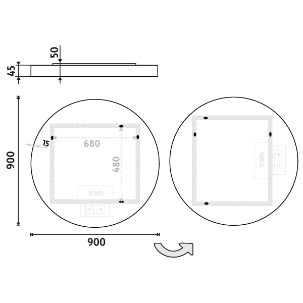 Konstrukce svícení: K rovnoměrnému rozptylu světla zrcadlo disponuje akrylovým matovaným difuzorem