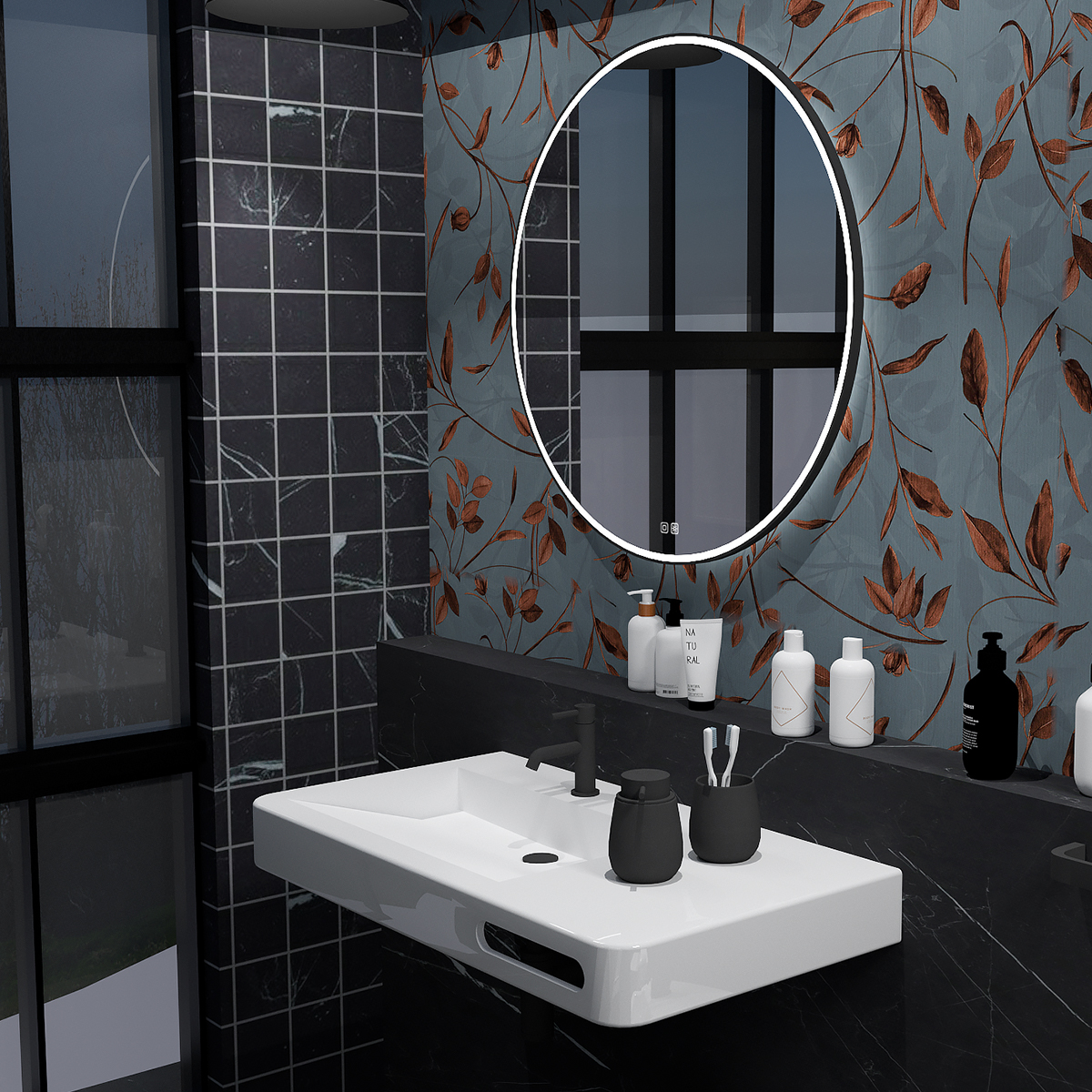 Nimco Černé kulaté LED zrcadlo pr. 900 mm se dvěma dotykovými senzory