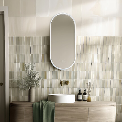 Pro dosažení kvalitního a rovnoměrného podsvícení je použit akrylový difuzor, který zajišťuje měkký a harmonický rozptyl světla bez viditelných bodových zdrojů. LED diody jsou vkusně integrovány do rámu spolu s difuzorem, což přispívá k elegantnímu a čistému vzhledu zrcadla.