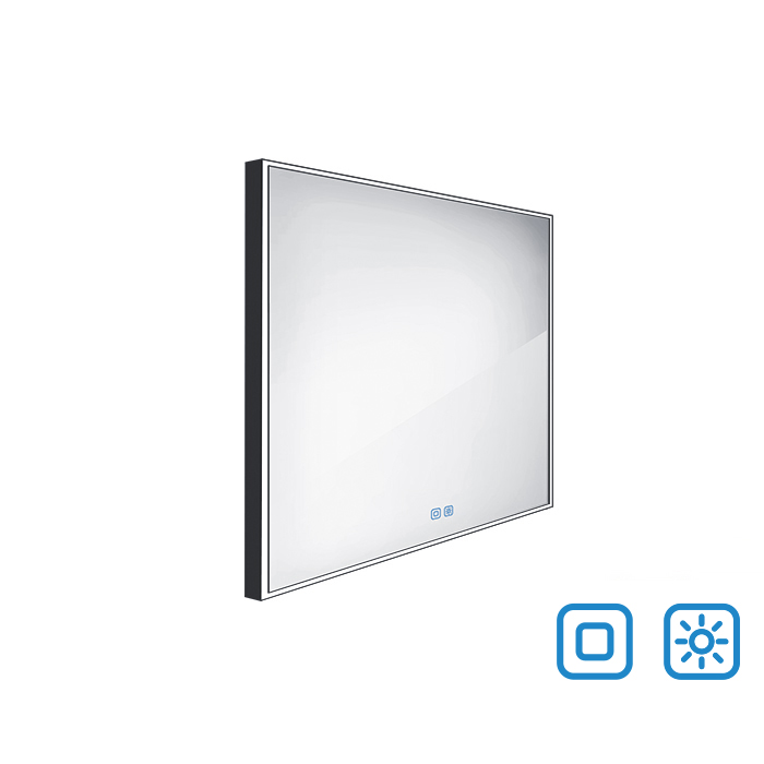 Nimco Černé LED zrcadlo 700×700 se dvěma dotykovými senzory