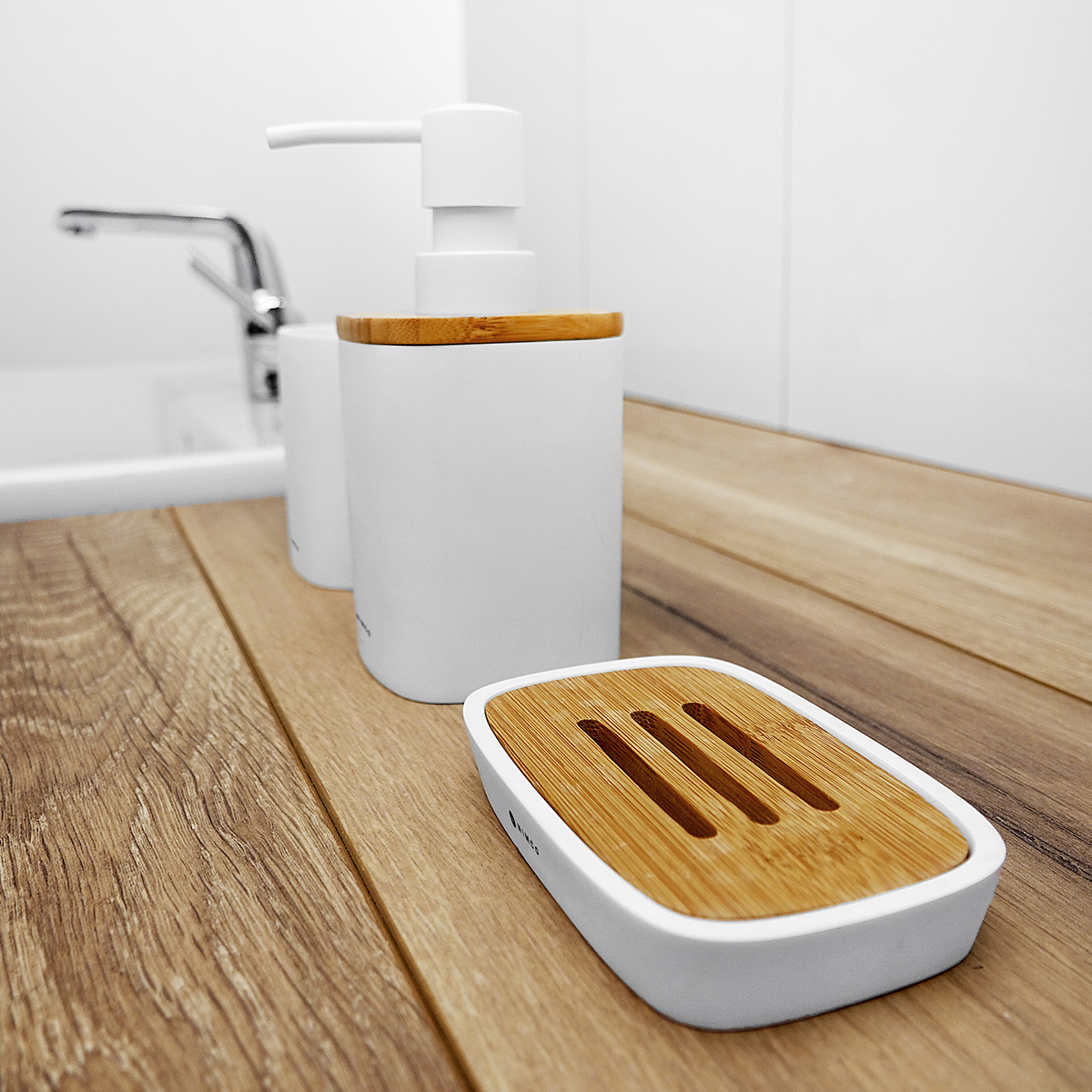 Sada doplňků do koupelny dávkovač, mýdlenka, pohárek je skvělým doplňkem do koupelny. Pokud sníte o koupelně s přírodními prvky, není třeba se příliš omezovat. Současný trh nabízí nepřeberné množství těchto materiálů a doplnit takovou koupelnu můžete lehce se sérií BADU. Bílá barva v kombinaci s bambusem dodá vaší koupelně ten správný ráz. Obsah dávkovače v setu 270 ml.
