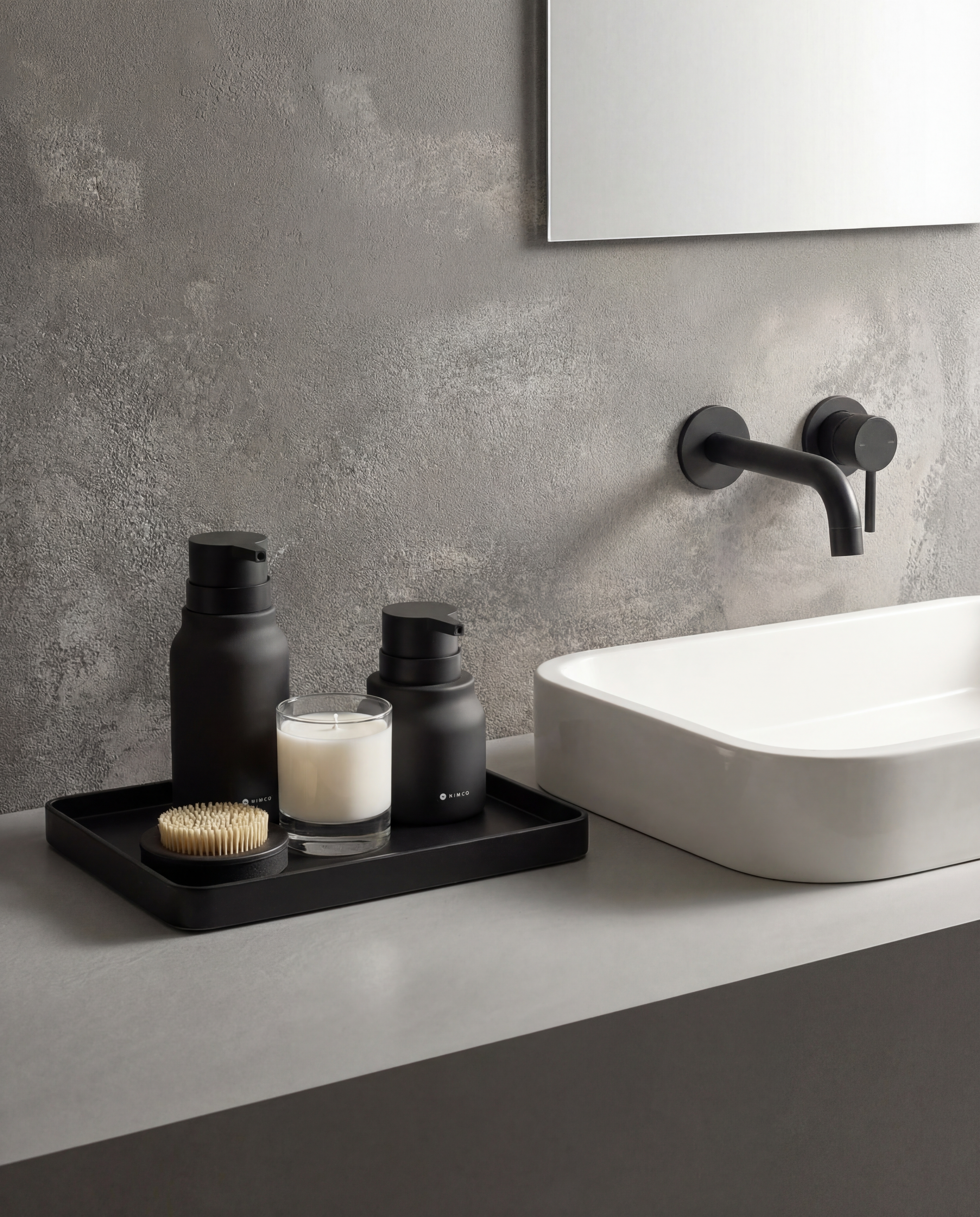 Dávkovač mýdla lze doplnit také o další výrobky stejné designové řady, jako pohárek na zubní kartáčky.