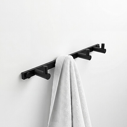 Držák s 5 háčky je skvělým doplňkem do koupelny. V současných trendech panuje nádech funkcionalismu a technických prvků. Tyto moderní tendence bezesporu reprezentuje řada koupelnových doplňků UNIX černý. Spojuje univerzálnost chromu spolu s čistým a nevtíravým vzezřením keramiky. Díky technicky univerzálnímu designu bude vhodně ladit s ostatními prvky dnešních koupelen. Dlouhá životnost, bytelné provedení, kvalitní materiál ji předurčují získat si široké uplatnění, jak ve veřejných zařízeních, tak v domácnostech. Výrobek je určený k vrtání i k nalepení. Montážní plíšek je pro obě varianty stejný. Lepidlo MAMUT není součástí balení výrobku. Lze jej dokoupit pod artiklovým číslem 35003TU. Množství lepidla v tubě vystačí k přilepení 8-10 úchytů.