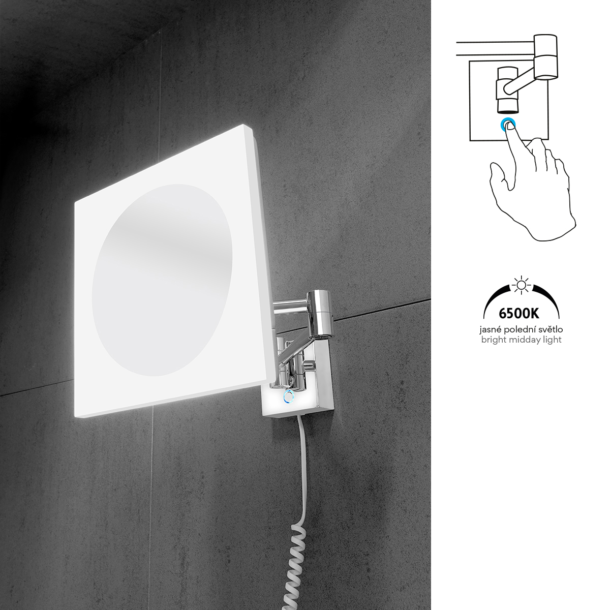 LED zvětšovací zrcátko s dotykovým podsvíceným senzorem hranaté