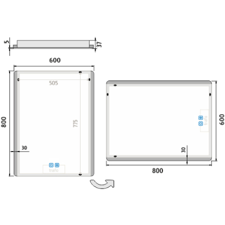 Nimco LED zrcadlo 600×800 se dvěma dotykovými senzory