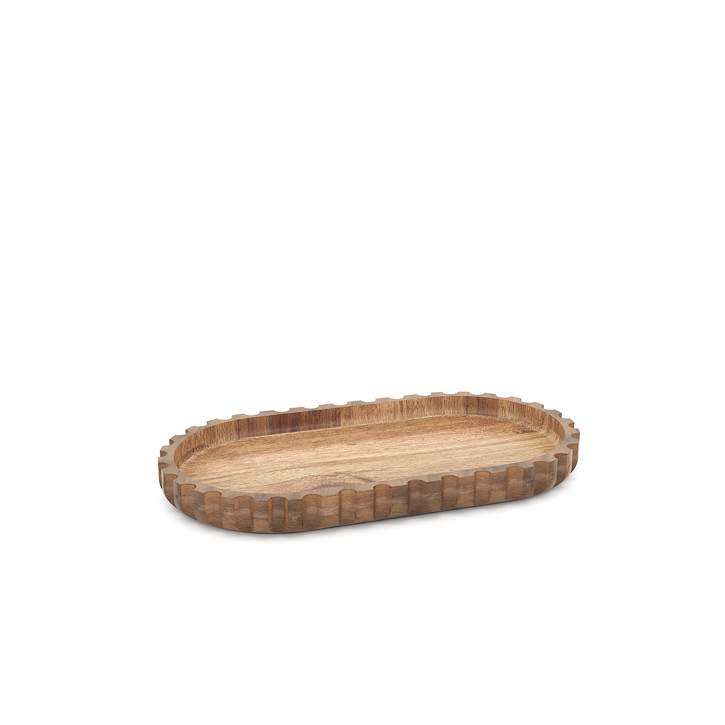 Dřevěný podnos z akáciového dřeva sjednotí vaši koupelnovou sestavu a udrží vše přehledně na jednom místě. Je ideální pro dávkovač, pohárky i mýdlenku, ale skvěle poslouží také jako elegantní místo pro odkládání šperků, hodinek či jiných drobností. Díky svému přírodnímu vzhledu působí harmonicky, elegantně a pomáhá vytvářet příjemnou atmosféru. Přirozená kresba akáciového dřeva dodává prostoru pocit tepla a klidu.