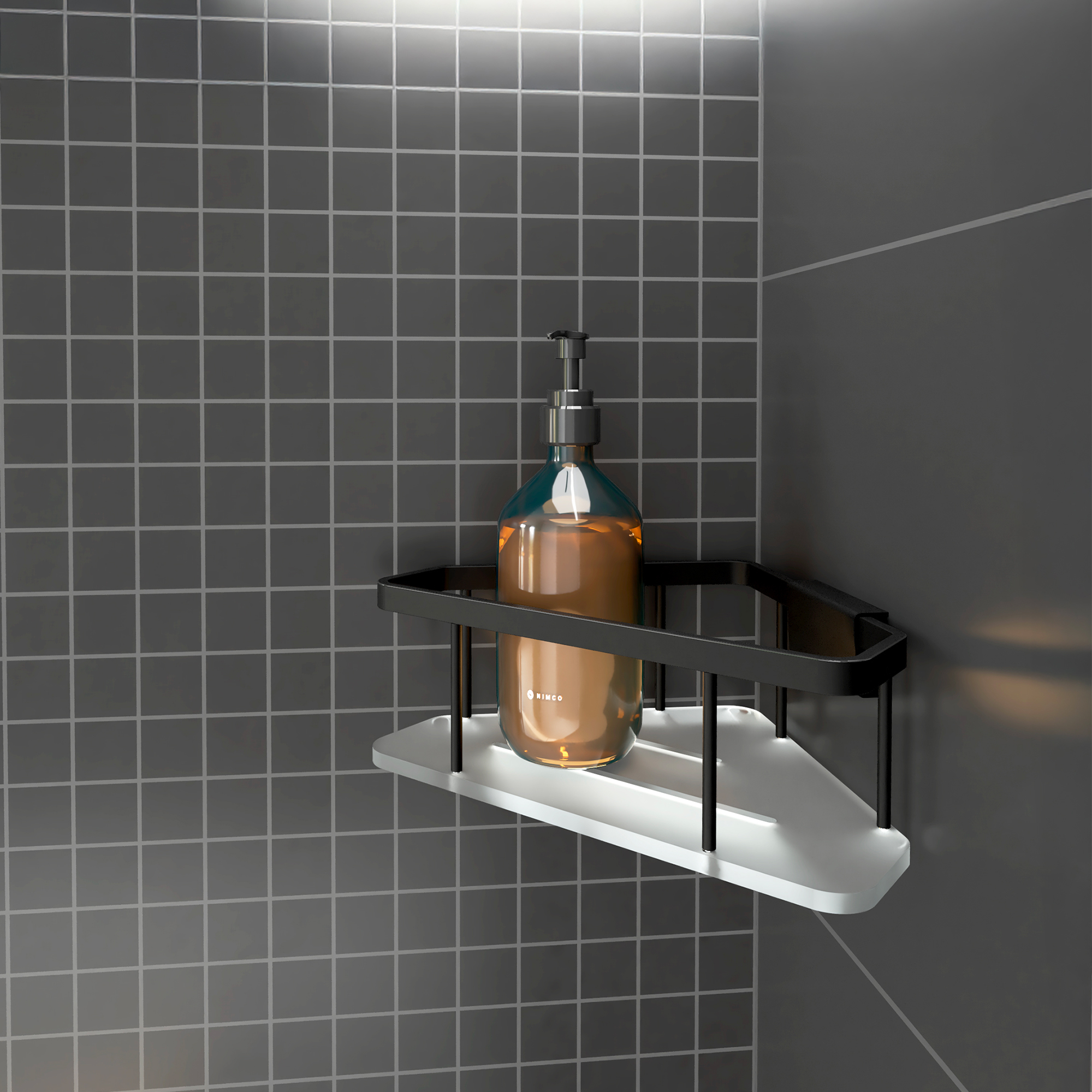 Černá rohová polička z akrylového skla s matně černou kovovou ohrádkou určená do sprchy nebo k vaně. Minimalistický design rohové poličky umocňují použité materiály a vyfrézované otvory pro lepší odkapávání vody. Odkládací plocha poličky je vyrobena z matně bílého akrylového skla o tloušťce 8 mm. Nosnost poličky 3 kg. Montáž lepením, vrtáním. Lepidlo MAMUT není součástí balení výrobku. Lze je dokoupit pod artiklovým číslem 35003TU.