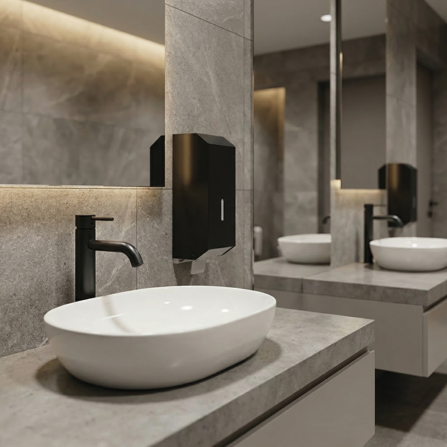 Zásobník na tekuté mýdlo nebo dezinfekční gel 1250 ml na stěnu černý matný je skvělým doplňkem do koupelny. Na toaletách frekventovaných místech jsou v současnosti populární zásobníky tekutých mýdel, které jsou jednoduché, až strohé, nejlépe neviditelné, ale s perfektními technickými parametry. Objem zásobníku je 1250 ml. Vnitřní část zásobníku je plastová a plnění je jednoduché. V případě plnění zásobníku dezinfekcí použijte GEL. Dávkovač není určen pro kapalnou dezinfekci.