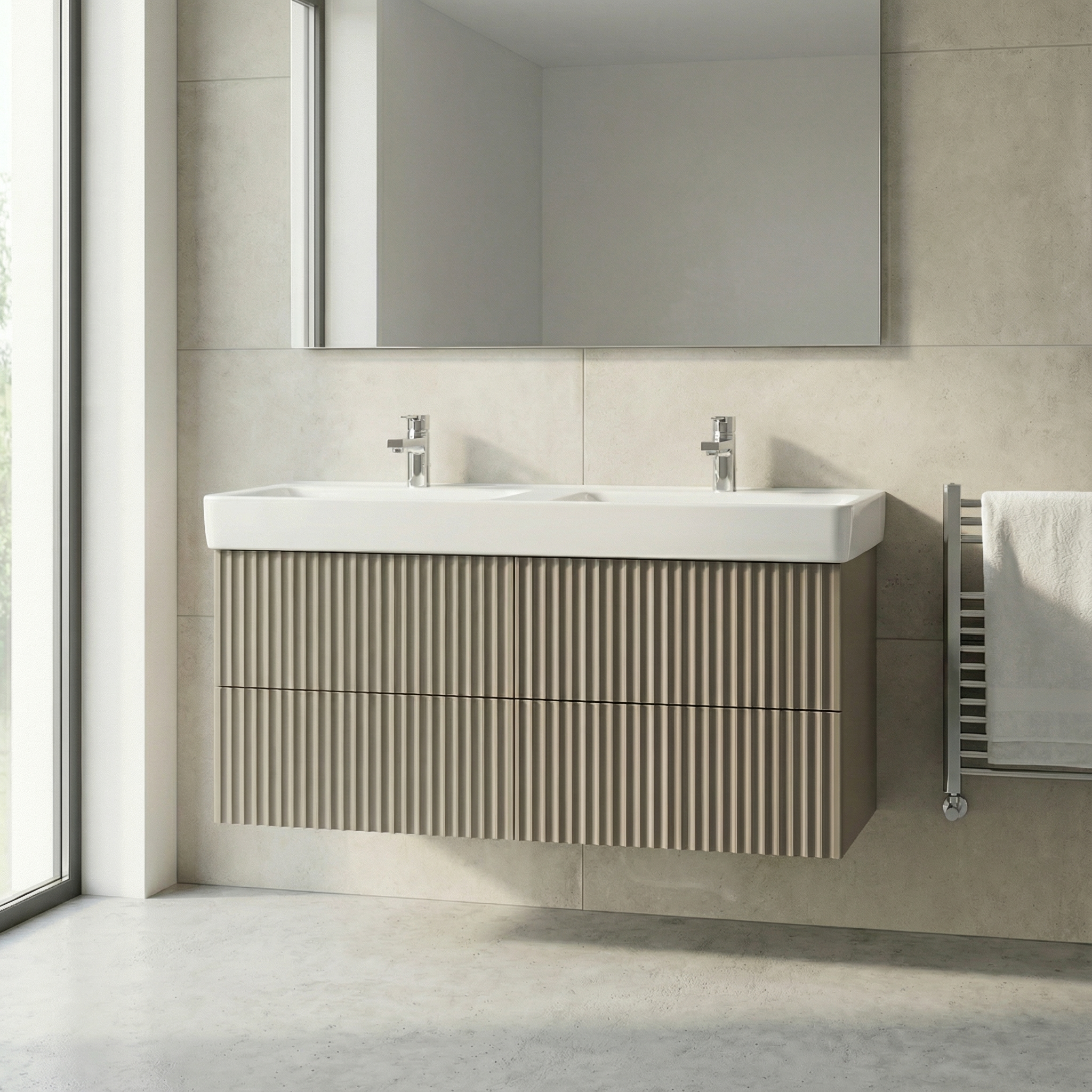 - Šírka: 120 cm – pre dvoj-vaničkové umývadlá