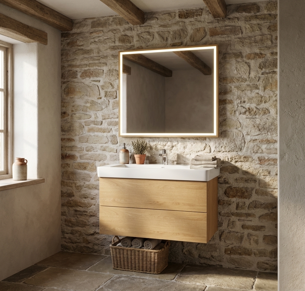 - Šírka: 850 mm – vhodná pre väčšie nábytkové umývadlá