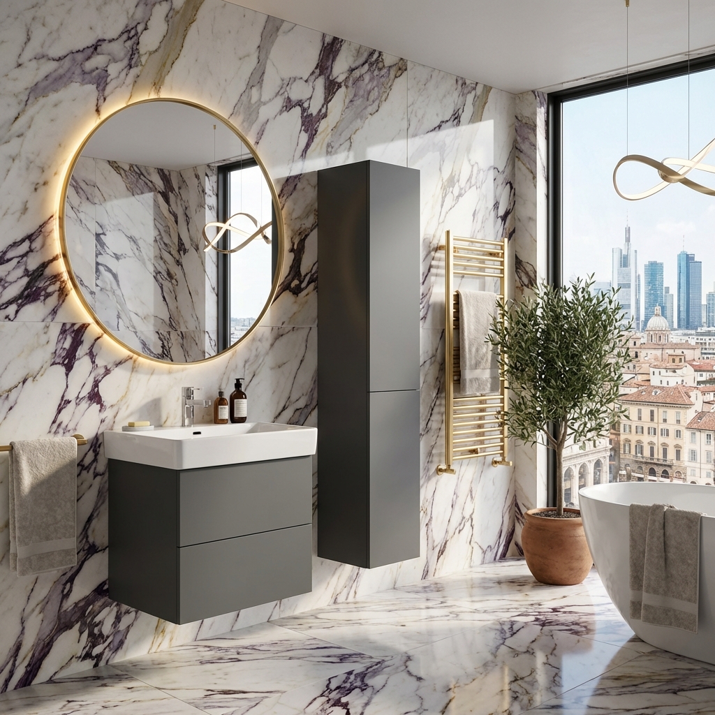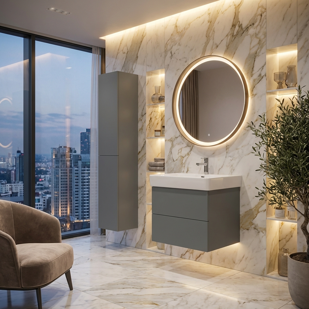 PRO Vysoká dverová skrinka je skvelým riešením pre organizáciu a uskladnenie vašich kúpeľňových potrieb. Vďaka jej vertikálnemu dizajnu nevyžaduje veľa miesta, čím je ideálna aj do menších priestorov. Umožňuje pohodlné uskladnenie uterákov, čistiacich prostriedkov a ďalších nevyhnutností. Zásluhou kvalitného kovania Blum sa skriňa otvára s minimálnym úsilím a bez hluku, čo zvyšuje komfort jej používania.