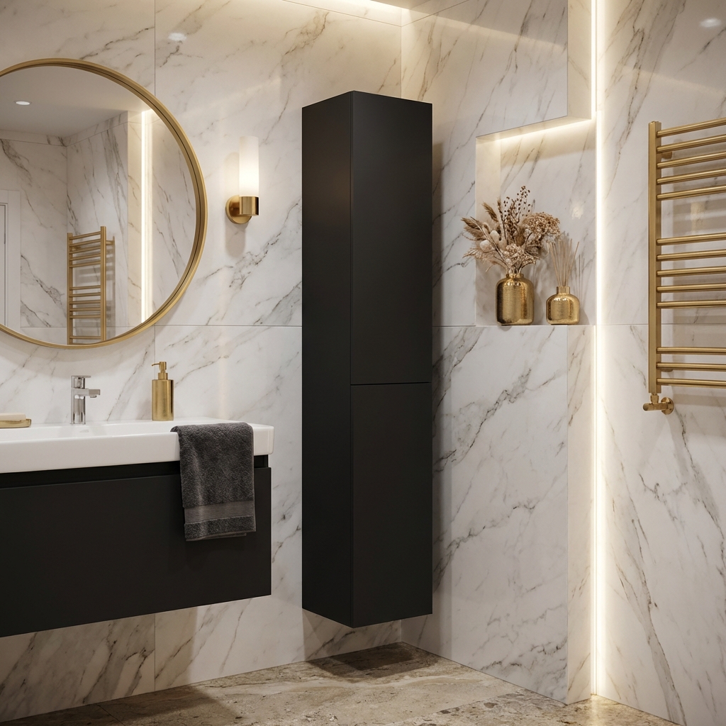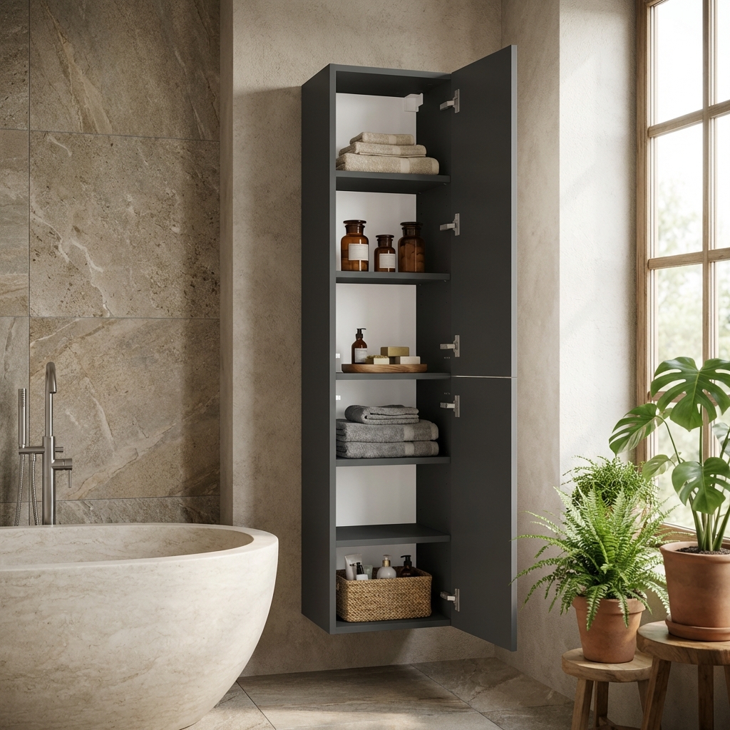 Vysoká dverová skrinka PRO do 350 je skvelou voľbou pre tých, ktorí hľadajú kombináciu kvality, funkčnosti a moderného dizajnu vo svojom kúpeľňovom nábytku.