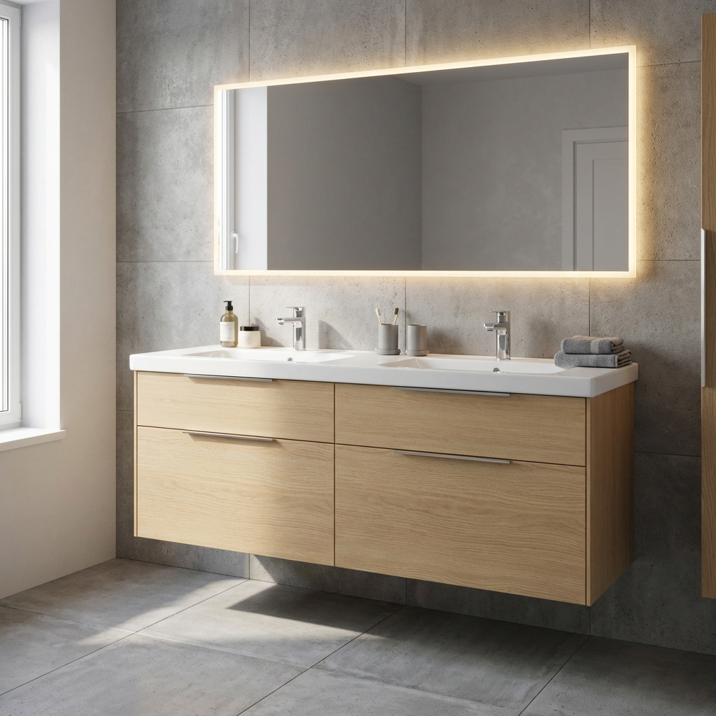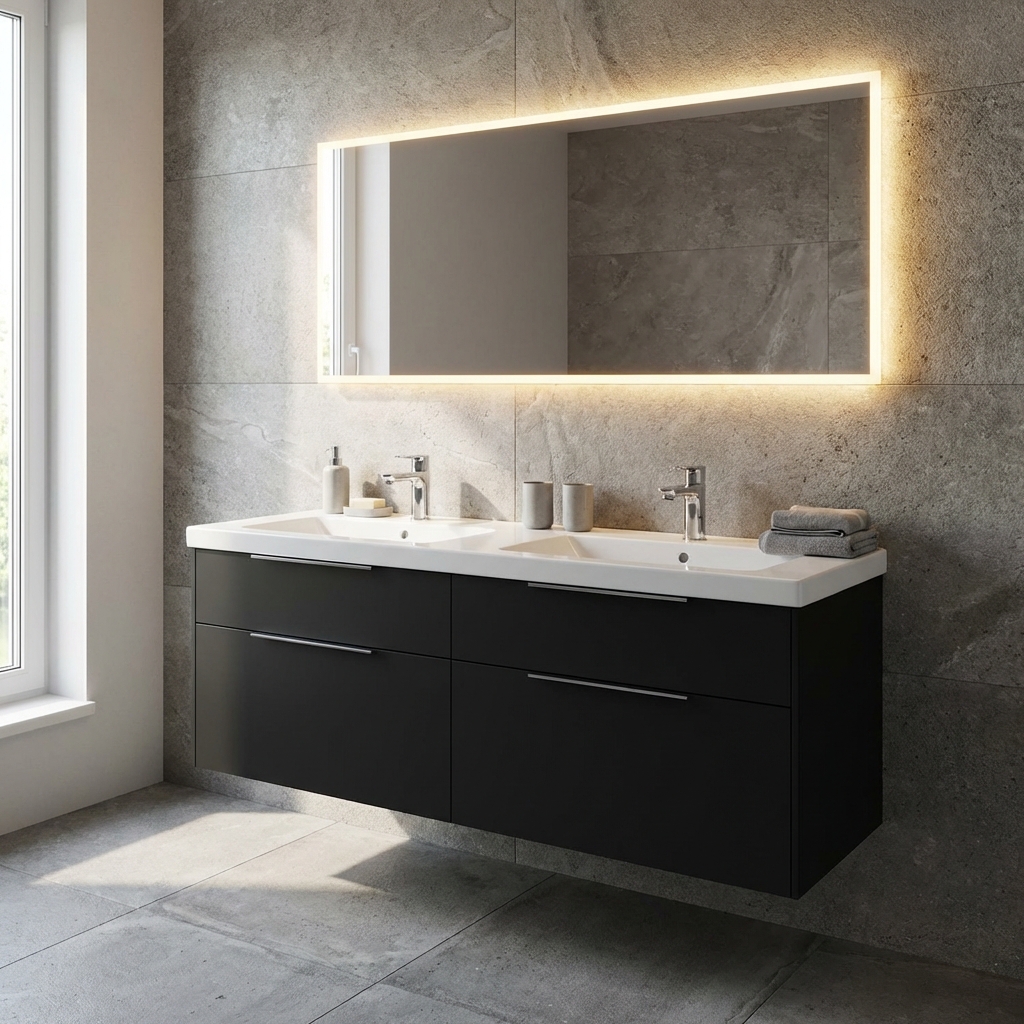 - Šírka: 1500 mm – vhodná pre široké umývadlá