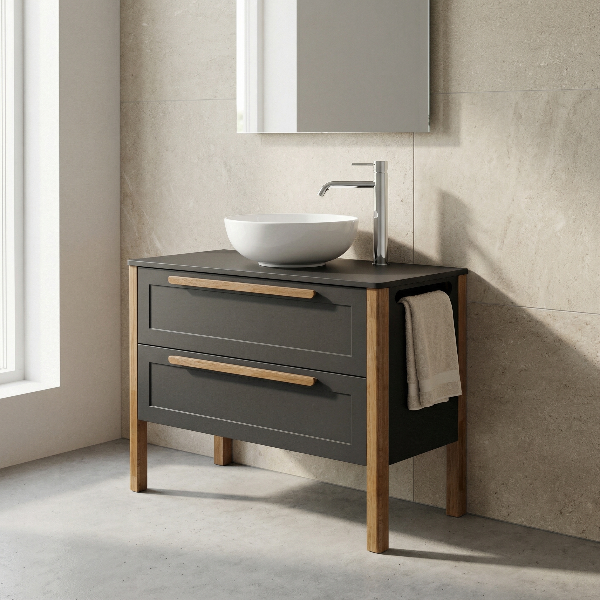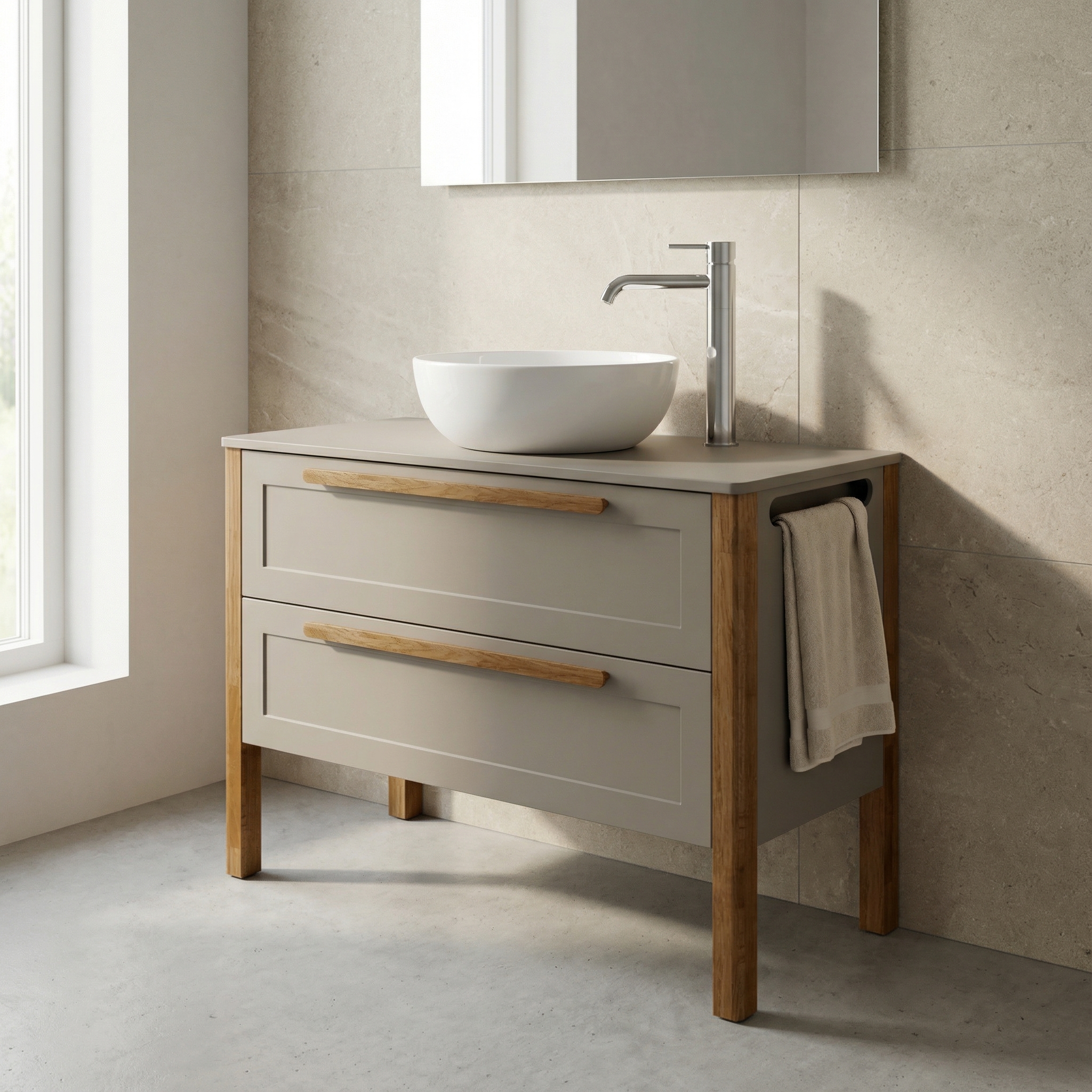 Stolík Villago 20 do 1200 s dvoj-zásuvkou je ideálnym riešením pre tých, ktorí hľadajú funkčný a elegantný nábytok do kúpeľne. Tento praktický stolík je navrhnutý tak, aby efektívne využil priestor a ponúkol dostatok úložného miesta pre všetky potrebné kúpeľňové doplnky.