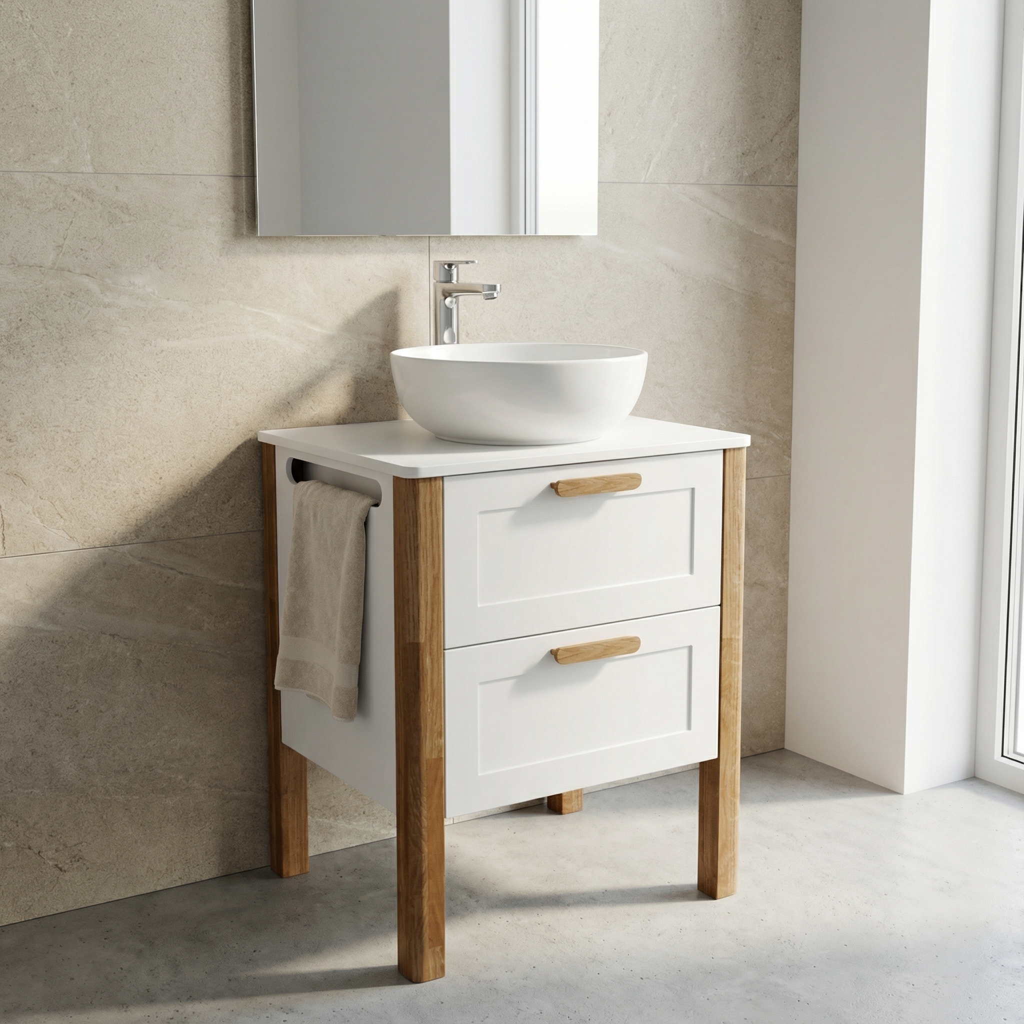 Stolík Villago 20 do 600 s dvoj-zásuvkou je ideálnym riešením pre tých, ktorí hľadajú funkčný a elegantný nábytok do kúpeľne. Tento praktický stolík je navrhnutý tak, aby efektívne využil priestor a ponúkol dostatok úložného miesta pre všetky potrebné kúpeľňové doplnky.