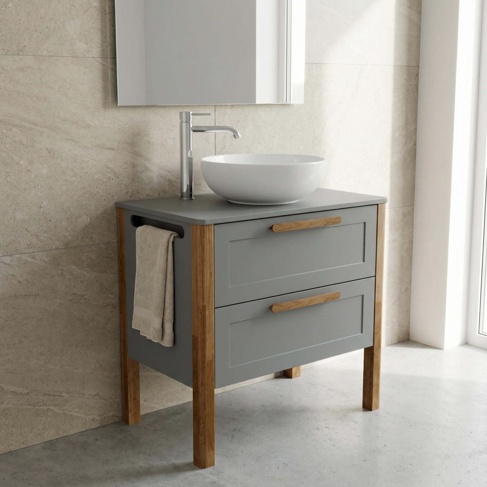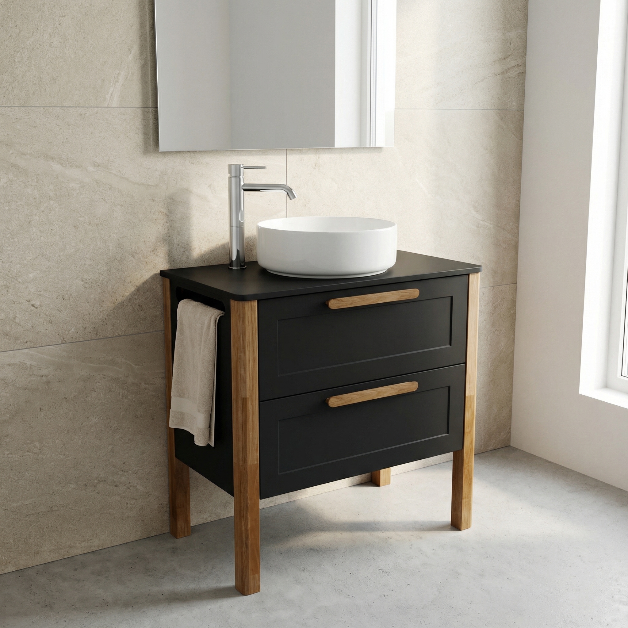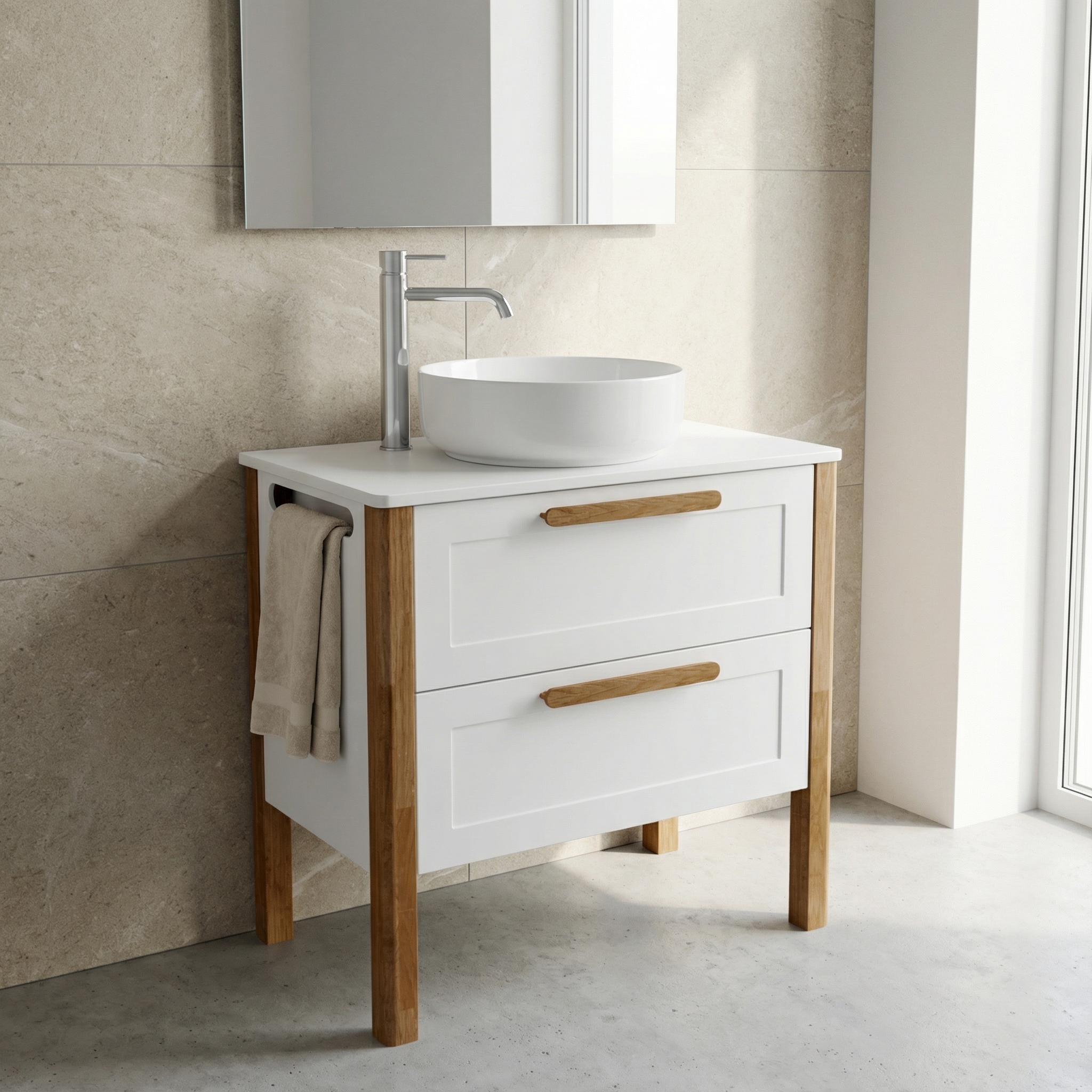 Stolík Villago 20 do 800 s dvoj-zásuvkou je ideálnym riešením pre tých, ktorí hľadajú funkčný a elegantný nábytok do kúpeľne. Tento praktický stolík je navrhnutý tak, aby efektívne využil priestor a ponúkol dostatok úložného miesta pre všetky potrebné kúpeľňové doplnky.