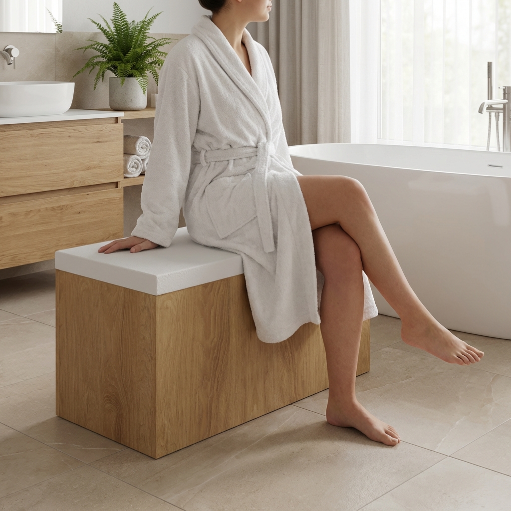 Taburetka PRO 900 je skvelým riešením pre tých, ktorí hľadajú pohodlné sedenie v kúpeľni alebo iných priestoroch. Jej výklopná konštrukcia poskytuje dodatočný úložný priestor na uteráky, osobné veci alebo čistiace prostriedky, čím pomáha udržiavať priestor organizovaný a prehľadný. S rozmermi 900 x 450 x 450 mm ponúka dostatok miesta pre sedenie a pohodlnú podporu. Vďaka kvalitnému kovaniu od značky Blum sa otváranie a zatváranie taburetky vykonáva hladko a bez námahy.