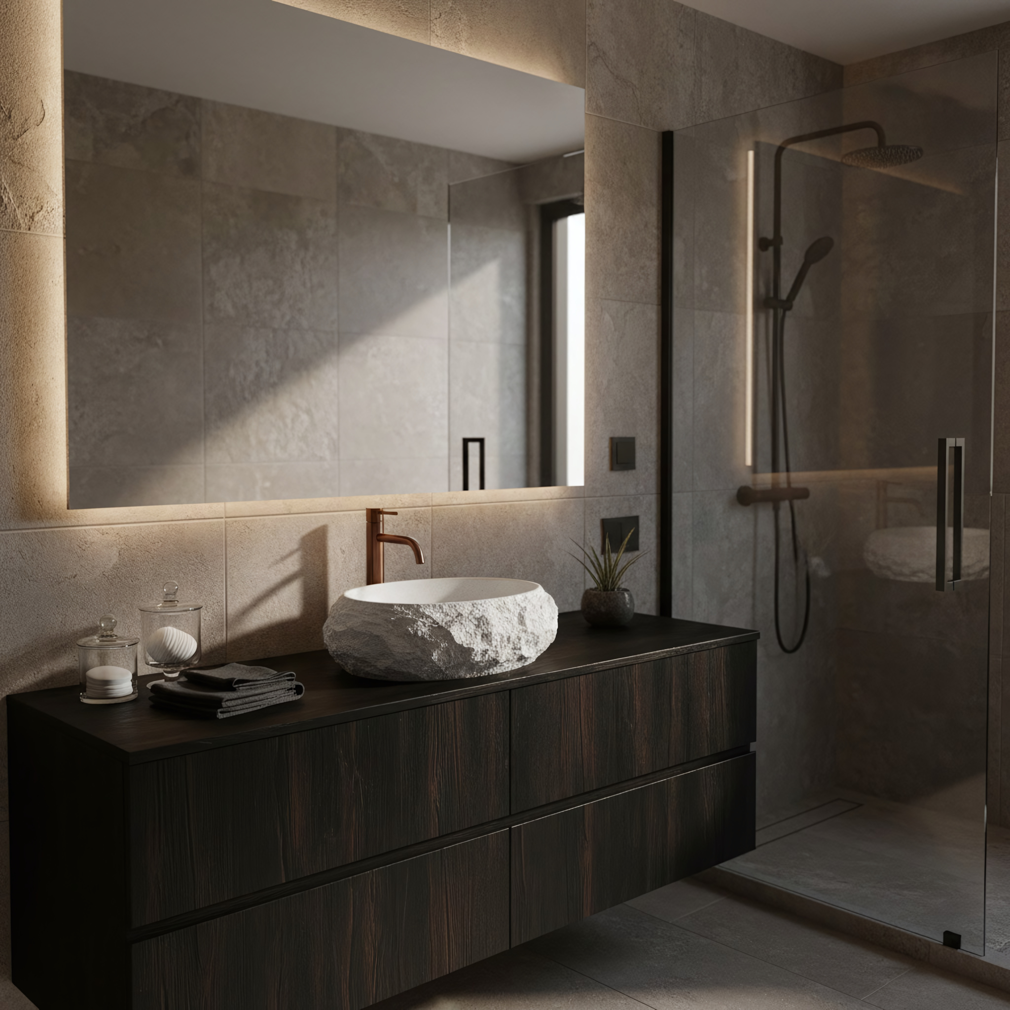 Vytvorte vo svojej kúpeľni prírodný akcent výberom umývadla na dosku Rea Mika Ivory. Tento model upúta svetlou farebnosťou a zaujímavou kombináciou povrchov. Surová, drsná vonkajšia textúra kontrastuje s dokonale hladkým vnútrom misy. Celok je vyrobený z moderného kompozitného umelého kameňa Artificial Stone, ktorý zaručuje dlhú životnosť. Odtieň Ivory – umývadlo je ladené do svetlého, teplého odtieňa lomenobielej. Táto univerzálna farba krásne presvetľuje interiér a zapadá do estetiky prírodných kameňov, ako je pieskovec či vápenec. Vlastnosti kompozitu – použitie materiálu Artificial Stone zabezpečuje vysokú tvrdosť a odolnosť a zároveň je príjemnejší na dotyk než keramika. Hygienický stred – vnútro misy je hladko vyleštené, čo zabraňuje usádzaniu nečistôt a uľahčuje každodenné čistenie, napriek pórovitému vonkajšiemu plášťu. Prevádzková odolnosť – inovatívny materiál je odolný voči vlhkosti, vysokým teplotám a náhodným nárazom, pričom si zachováva estetický vzhľad po dlhé roky. Montáž na dosku – model je určený na inštaláciu na skrinku alebo kúpeľňovú dosku, čo umožňuje plne vyniknúť jeho dekoratívnym vlastnostiam. Umývadlo Rea Mika Ivory je ideálnou voľbou pre milovníkov štýlu japandi, škandinávskeho a rustikálneho. Svetlá hmota s kamenným charakterom nielen plní praktickú funkciu, ale stáva sa aj jemným dekoratívnym prvkom, ktorý rozjasňuje priestor kúpeľne.