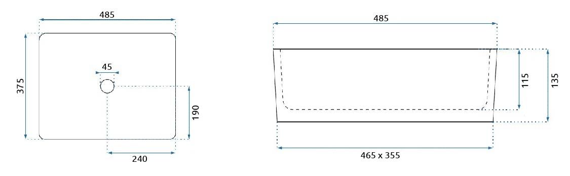 - Rozmery: Dĺžka 485, Šírka 375, Výška 135