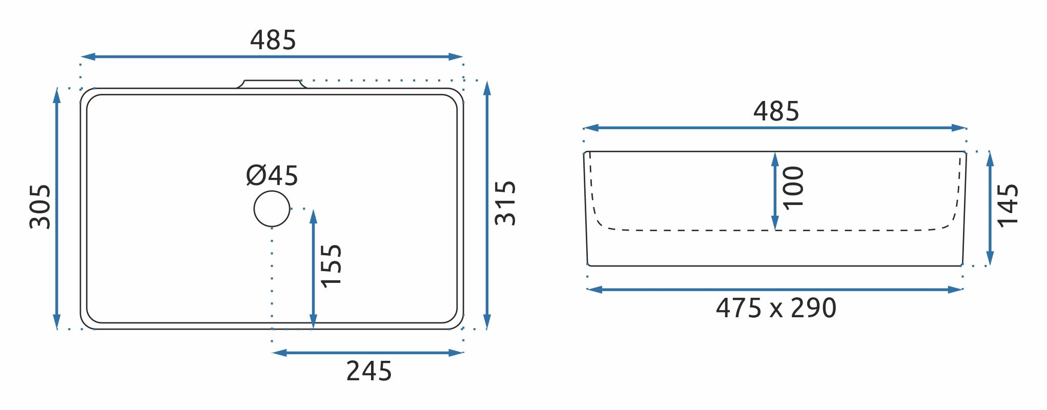 Umývadlo na dosku REA BERTA 48