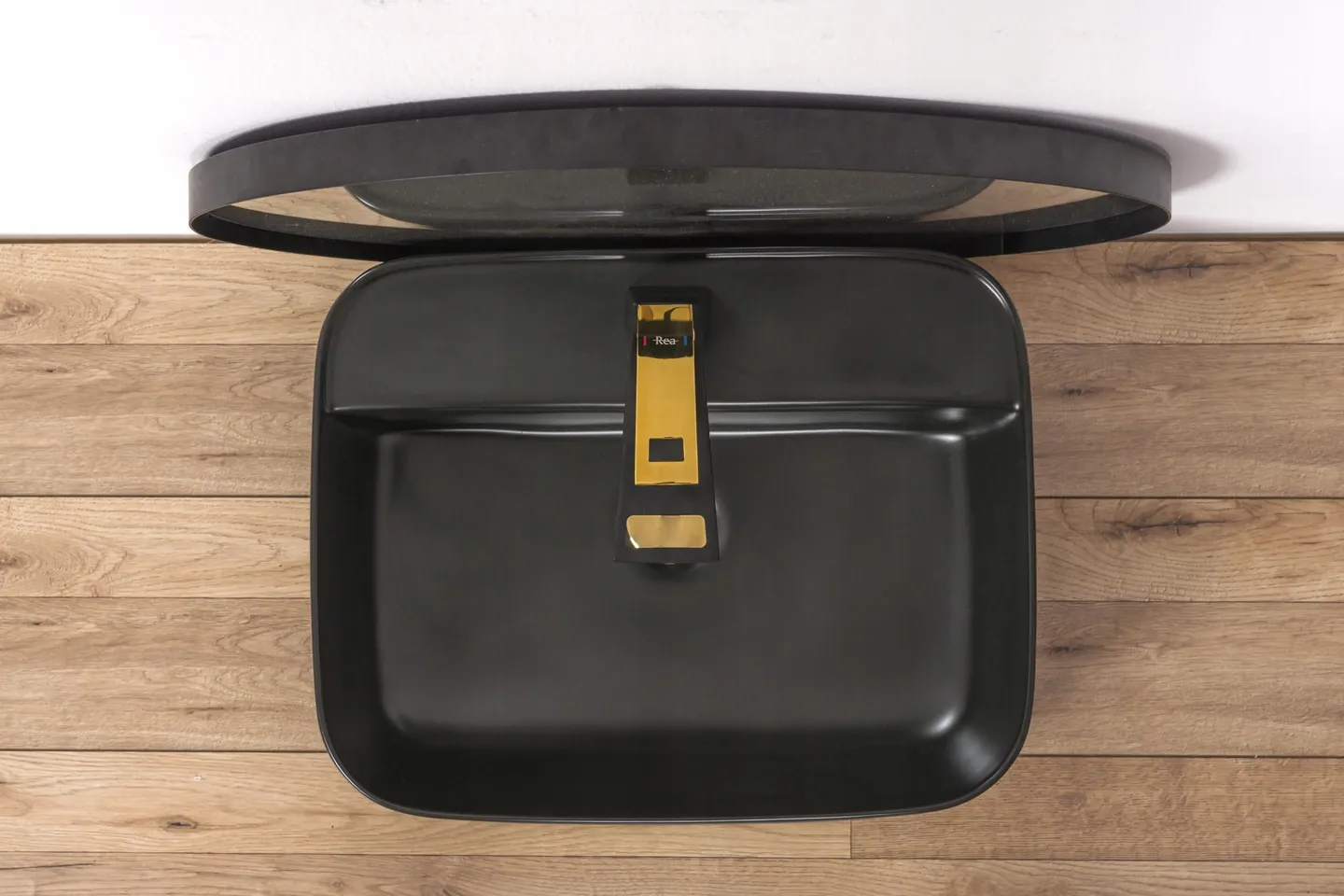 Prezentujemy Państwu piękną i niezwykle funkcjonalną i nowoczesną umywalkę. Jest to produkt, który w doskonały sposób wypełni Państwa przestrzeń łazienkową zachowując nienaganny wygląd i estetykę wnętrza. Umywalka jest przystosowana do montażu na blacie bądź szafce. Została wykonana z wysokogatunkowej ceramiki sanitarnej. Dzięki specjalnej fazie produkcji jest trwała i łatwa w utrzymaniu czystości. Odpowiednie baterie i syfony do umywalki znajdą Państwo w ofercie naszego sklepu. h3. „*CAD*“:https://umywalki.pl/lazienka-rea/cad/umywalka_martina_black_matt.zip