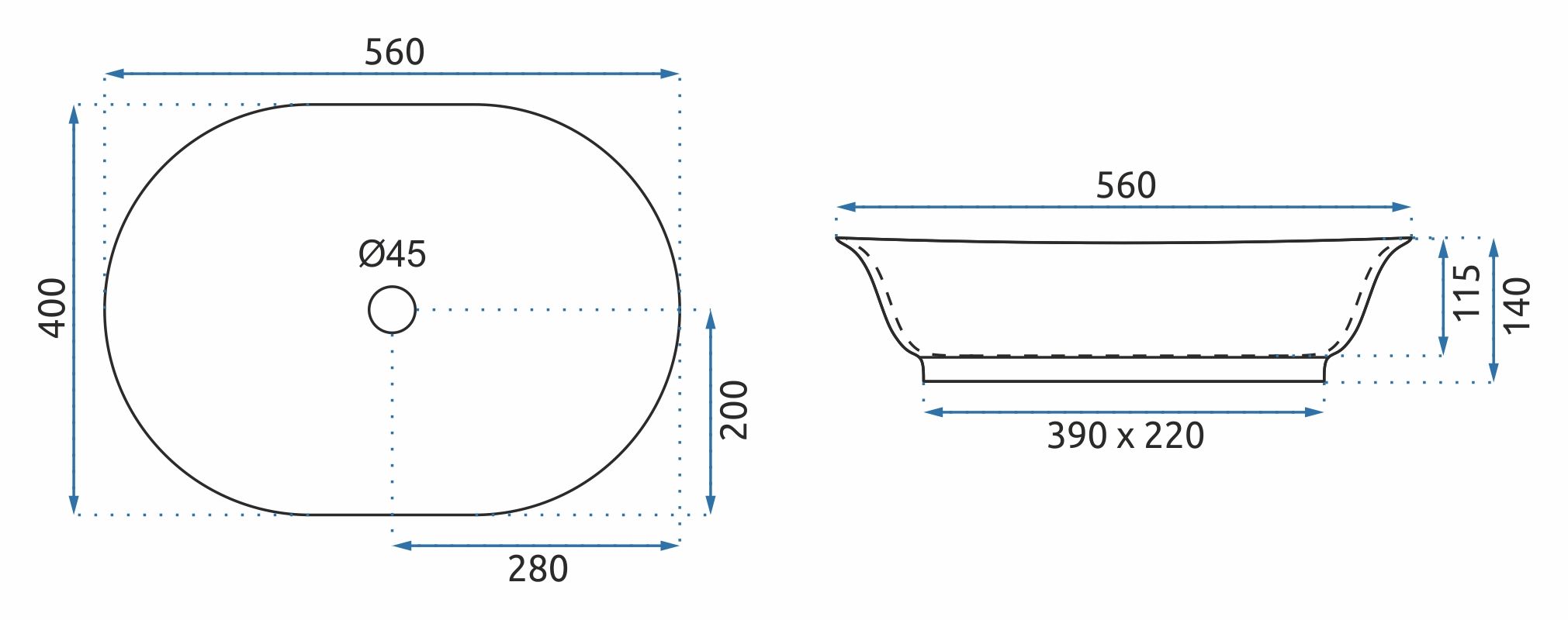 Rozmery 560 × 400 × 140 mm