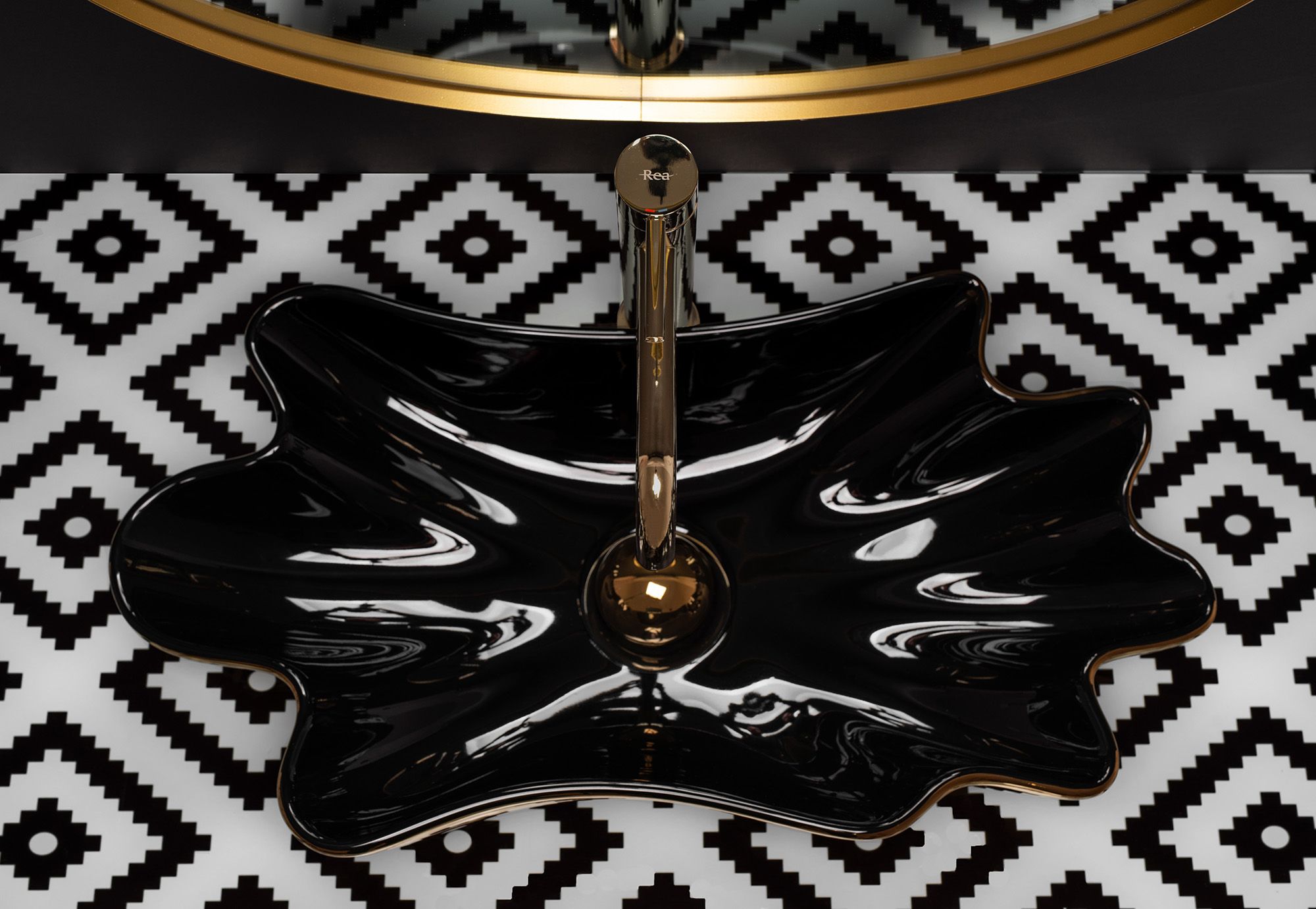 Umývadlo na dosku REA Sea Black Gold + Kolík Click-Clack