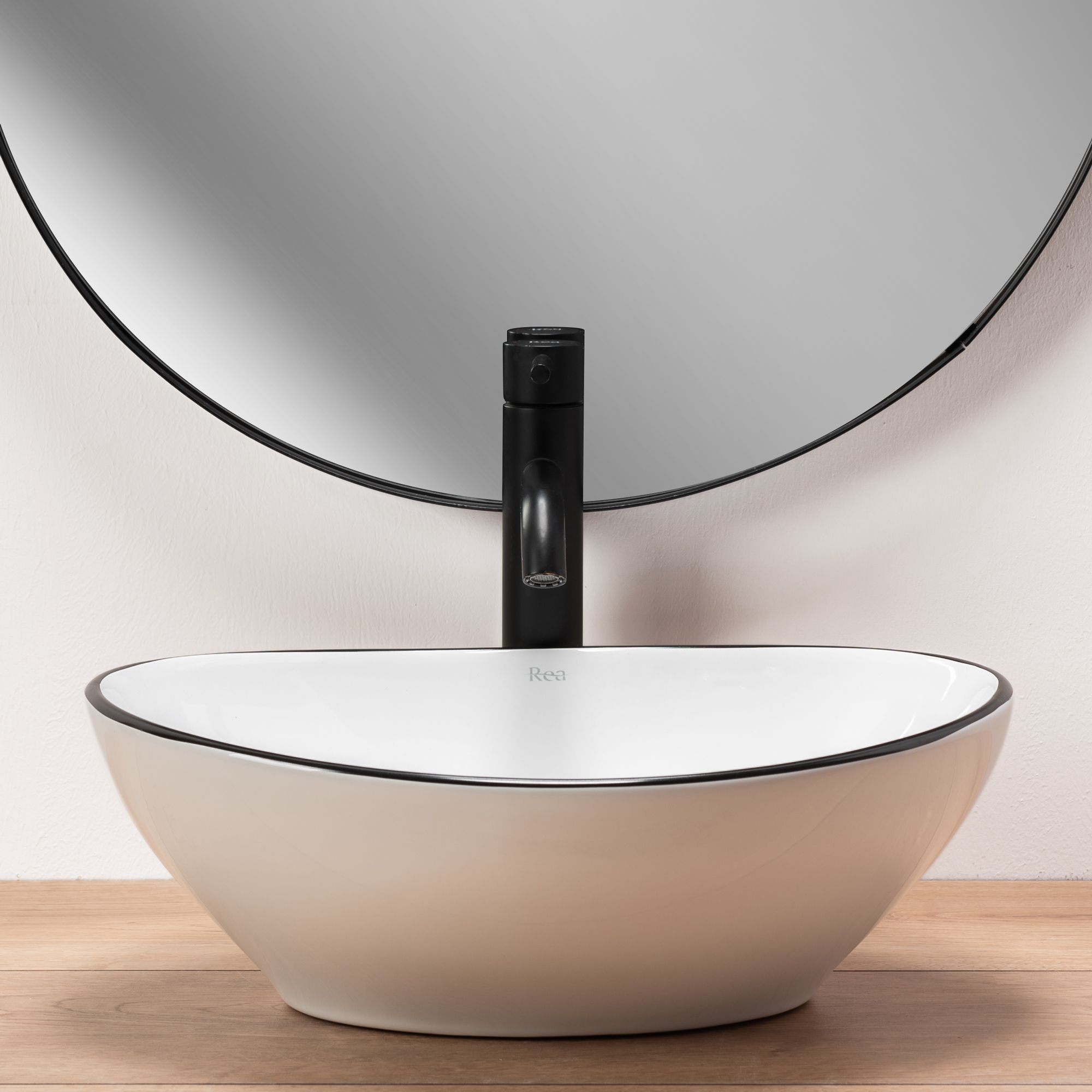 Predstavujeme Vám moderné nové umývadlo na dosku série Rea Sofia. Umývadlo elipsovitého tvaru vyrobené z vysoko kvalitných materiálov. Vďaka svojim vlastnostiam splní požiadavky všetkých ľudí, ktorí požadujú dokonalé vlastnosti a parametre podľa svojich predstáv. Ide o perfektný model pre ľudí, ktorí hľadajú predovšetkým funkčné, ale hlavne jednoduché riešenie. Umývadlo je určené na montážnu dosku, ale je možné ho kombinovať aj so skrinkou. Umývadlo je vyrobené v bielom lesklom prevedení s čiernym okrajom a vďaka špeciálnej fáze výroby sa ľahko čistí a je veľmi odolné. Zvolená technika na povrchovú úpravu tohto umývadla robí každé umývadlo originálne, pretože každé je iné. Má svoj jedinečný design a jedinečný vzor.