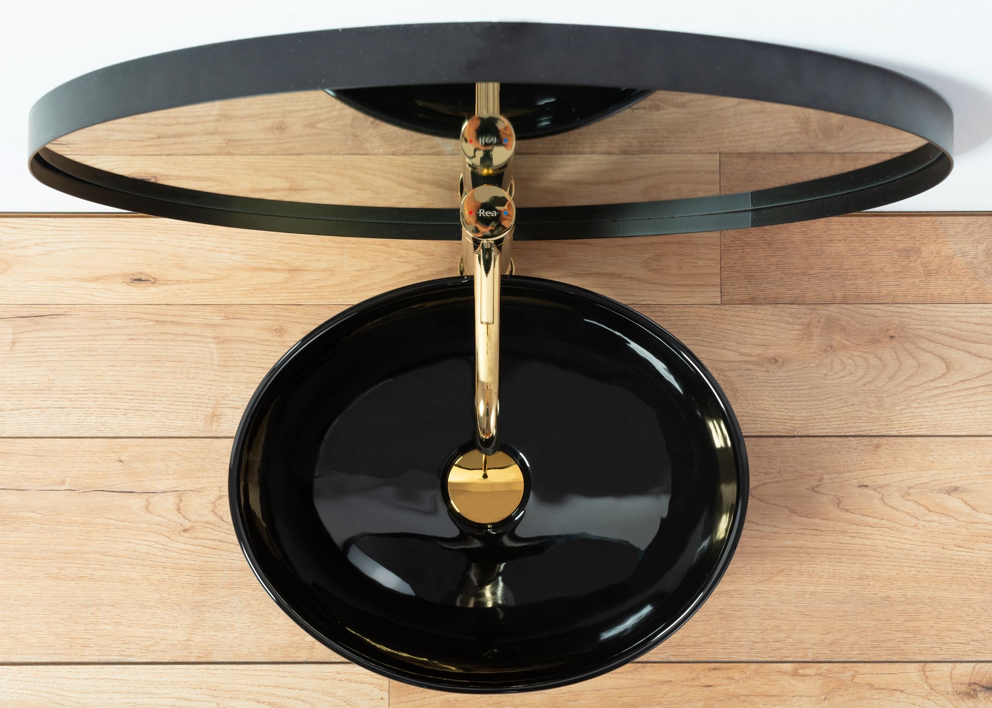 Moderné umývadlo na dosku v sýto čiernej farbe. Nadčasový tvar a malé rozmery umožnia dokonalé usporiadanie aj v malých kúpeľniach. Umývadlo je vyrobené z kvalitnej keramiky, ktorá zaručuje bezchybný vzhľad a používanie po roky. h3. „*CAD*“:https://umywalki.pl/lazienka-rea/cad/umywalka_sofia_black.zip