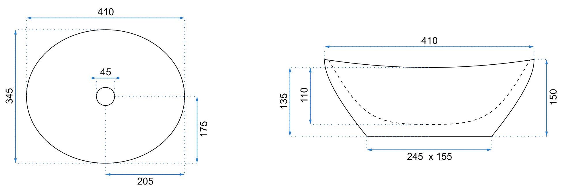 - Rozmery: Dĺžka 410, Šírka 345, Výška 150