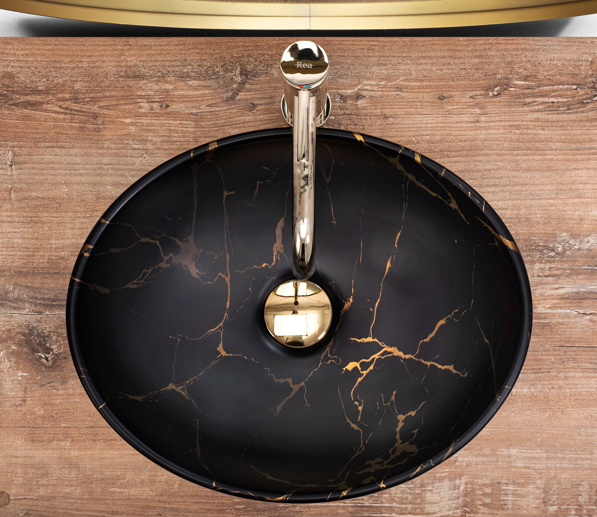 Umývadlo na dosku REA Sofia in marble mat Black Gold