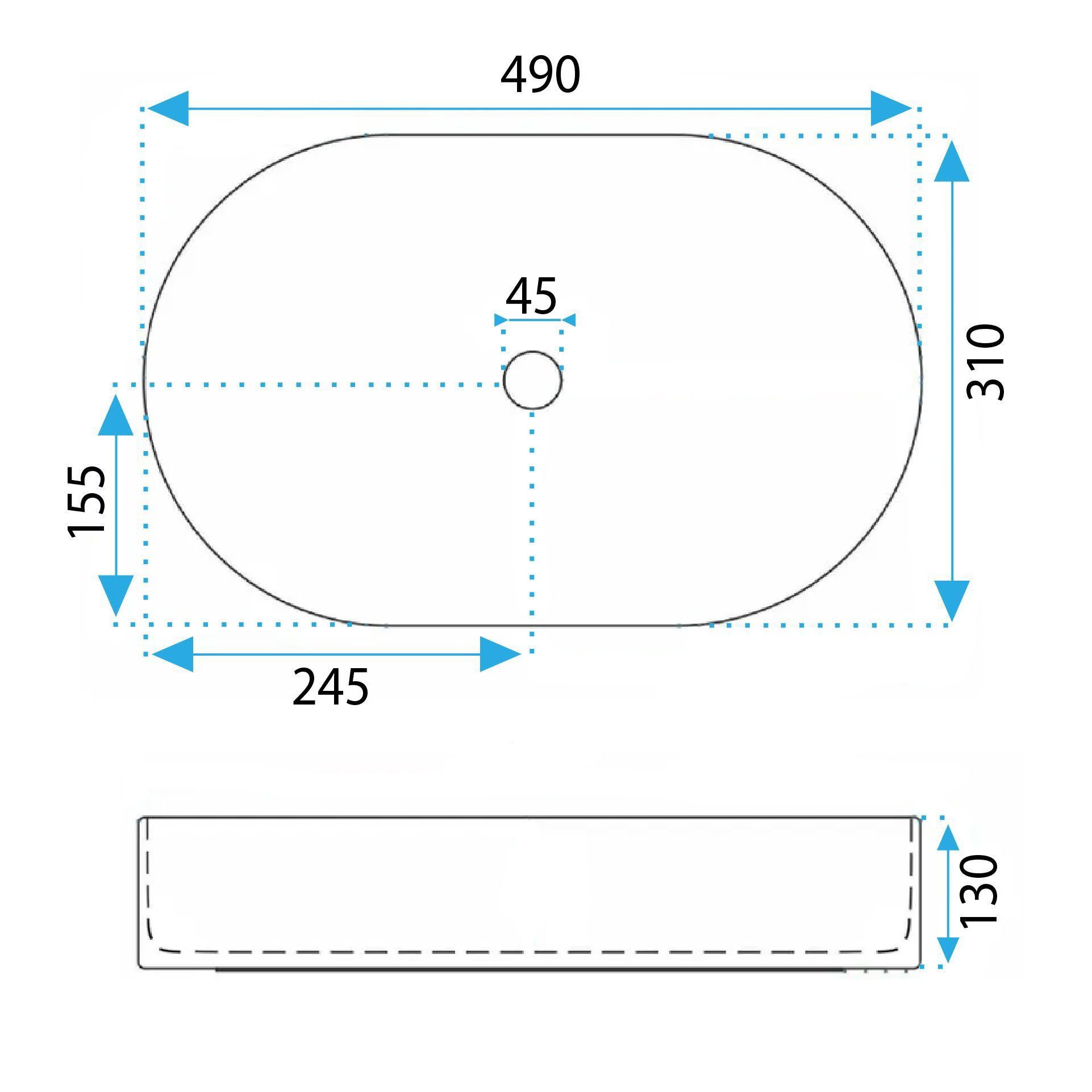 - Rozmery: Dĺžka 490, Šírka 310, Výška 130