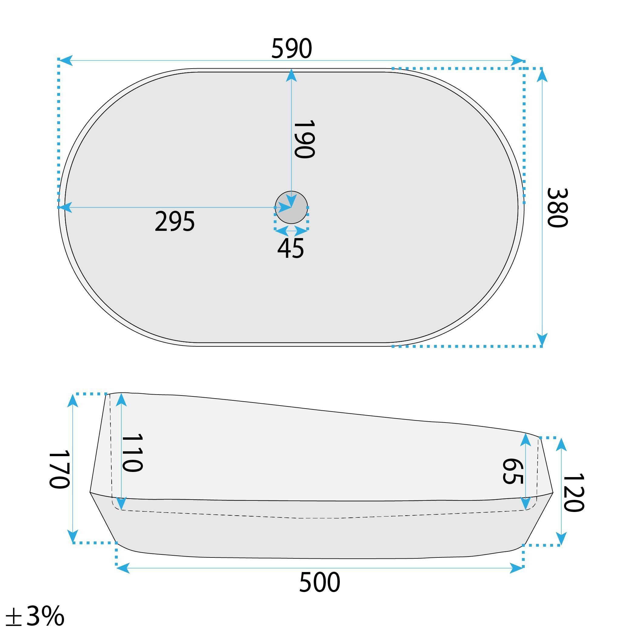 Asymetrická forma – charakteristickou črtou umývadla je jeho nepravidelná výška. Jeden bok misy je výrazne vyšší ako druhý, čím vzniká moderný, „zrezaný“ tvar.