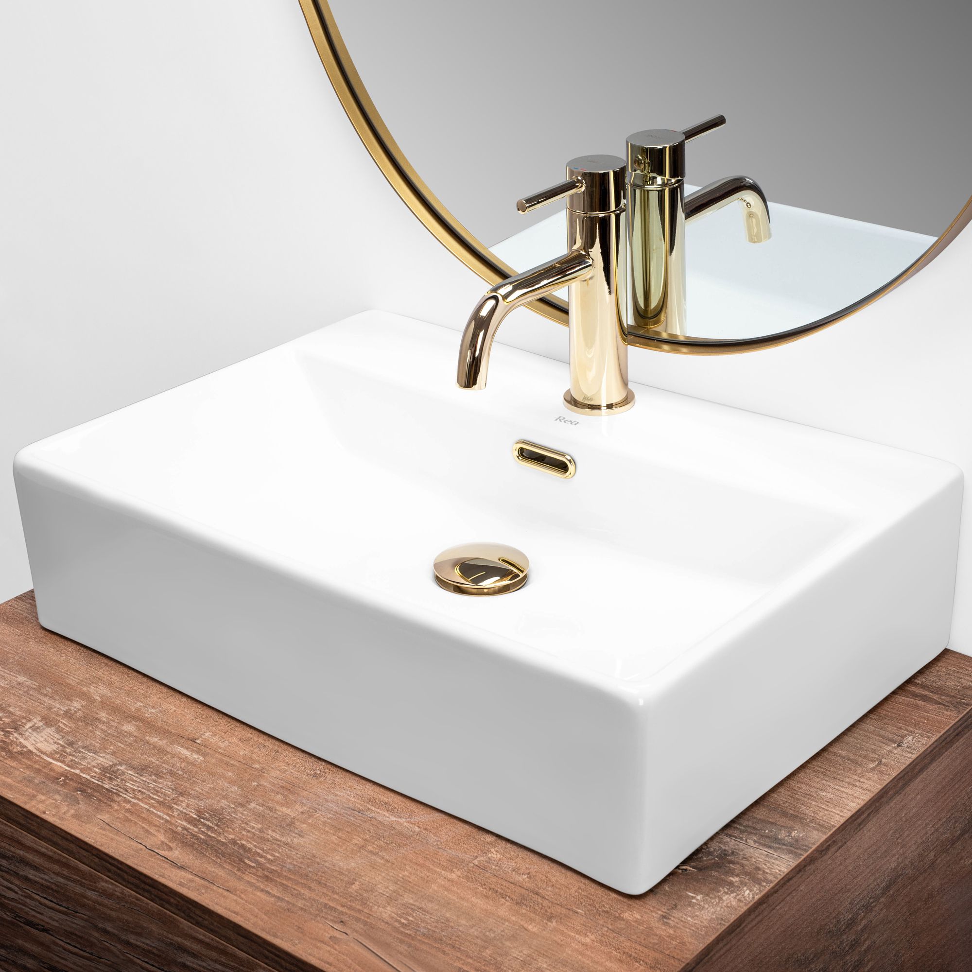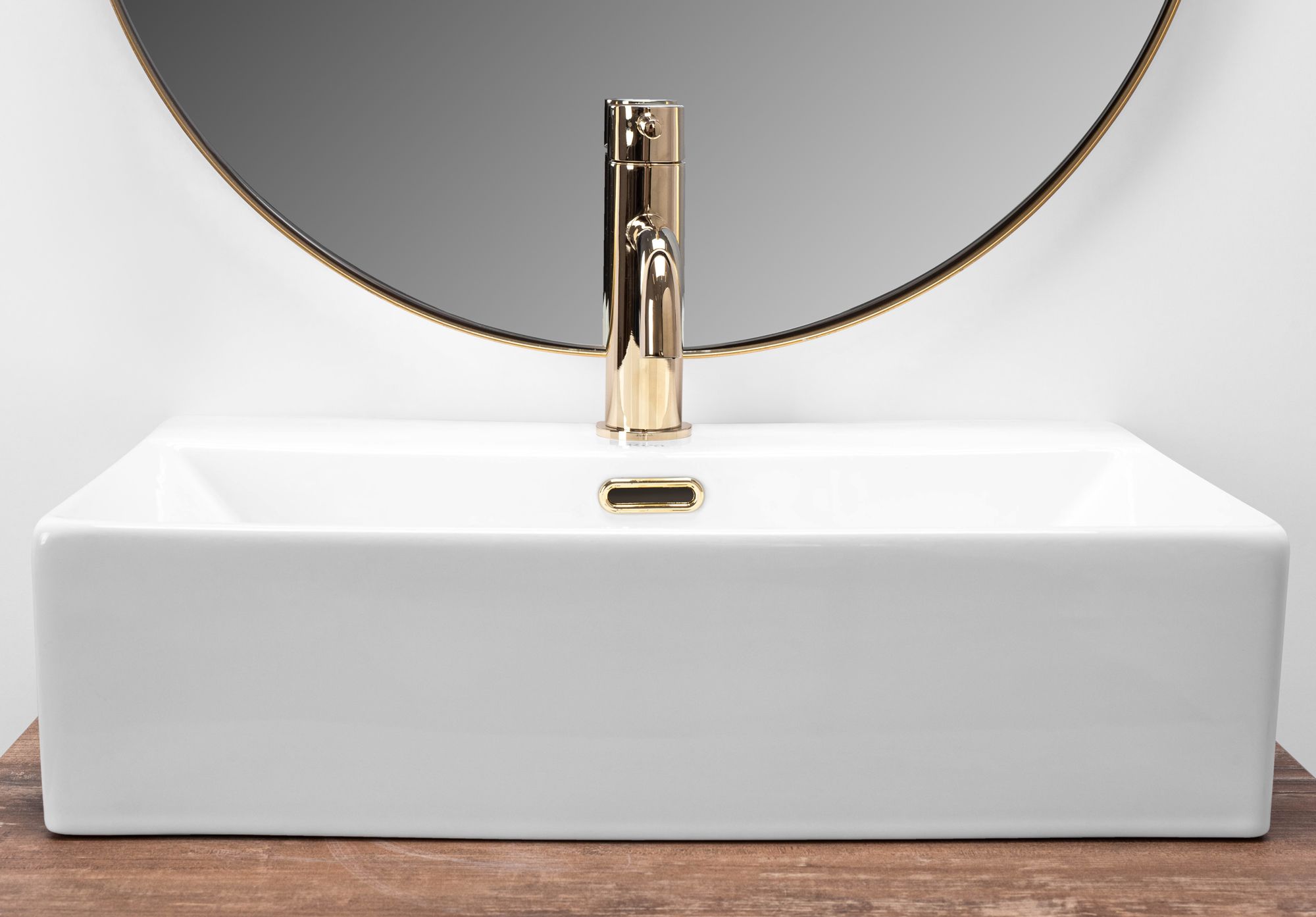 Predstavujeme Vám nové moderné umývadlo na dosku série Rea Bonita. Umývadlo neobyčajného tvaru je vyrobené z materiálov najvyššej kvality a jeho vlastnosti splnia všetky vaše požiadavky. Tento model ocení predovšetkým zákazník, hľadajúci nielen funkčné, ale aj estetické riešenie. Umývadlo je určené na závesnú montáž, montáž na dosku, ale je možné ho kombinovať aj so skrinkou. Umývadlo v bielom lesklom prevedení so zlatými prvkami sa navyše vďaka špeciálnej fáze výroby ľahko čistí a je veľmi odolné.