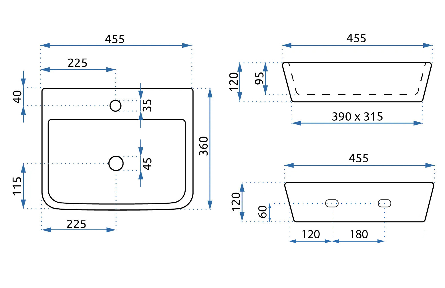 Umývadlo závesné/na dosku REA Remi