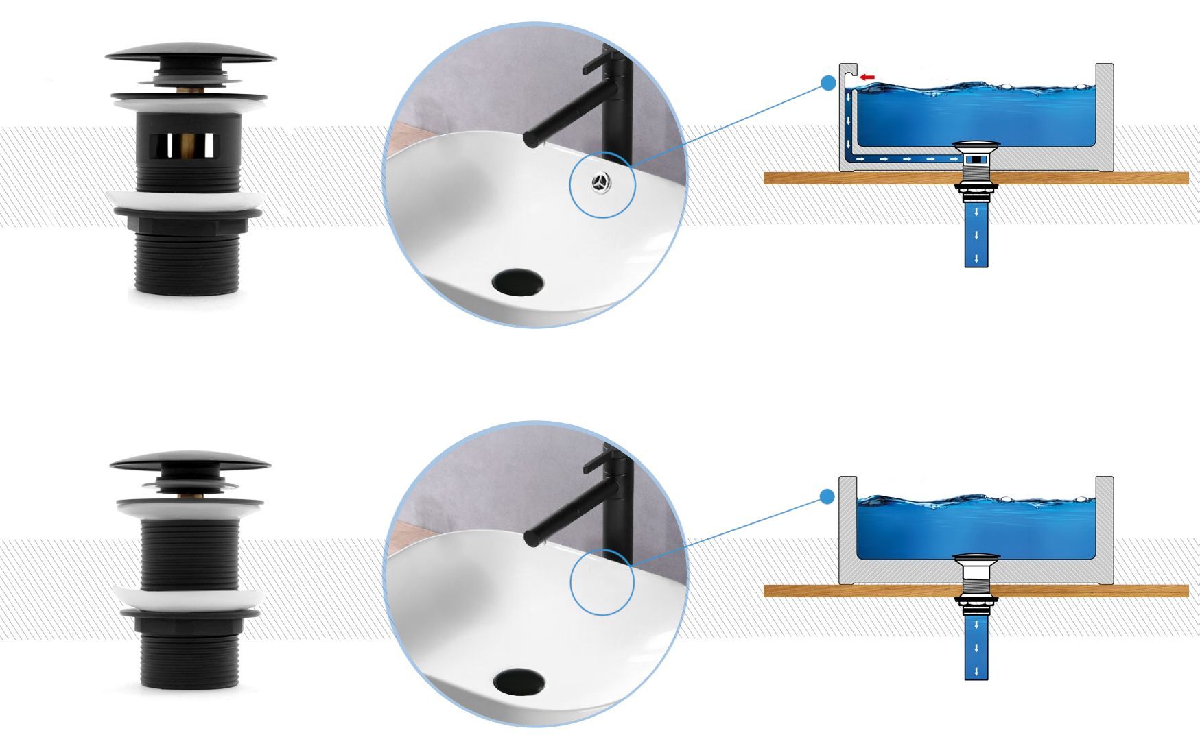 Umývadlový sifón Rea s čiernou zástrčkou „click-clack“ je praktickým doplnkom, ktorý nielen že zabezpečuje bezproblémové odvodnenie vody, ale aj zvyšuje estetiku vašej kúpeľne. Vďaka svojmu jedinečnému mechanizmu „click-clack“ je ovládanie jednoduché a intuitívne. Stačí jemne stlačiť zástrčku a voda sa buď odtečie, alebo sa uzavrie, čo zaručuje pohodlné používanie.