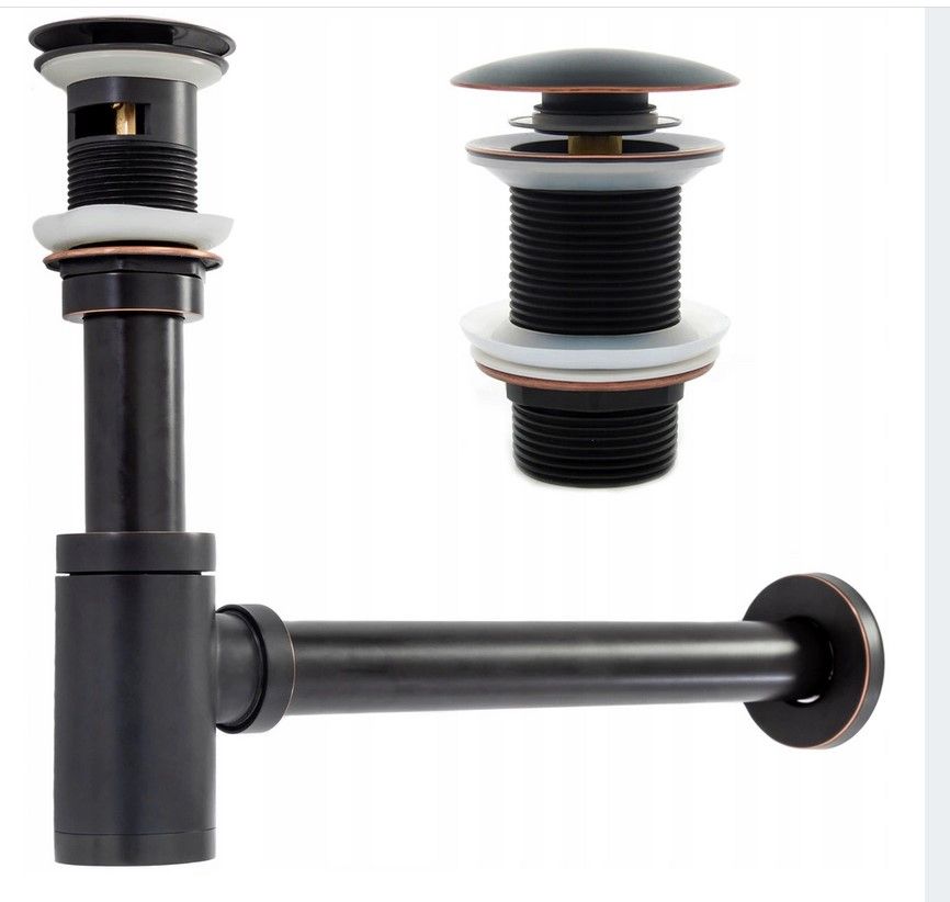 Umývadlový sifón s univerzálnym výpustom click-clack – old čierna