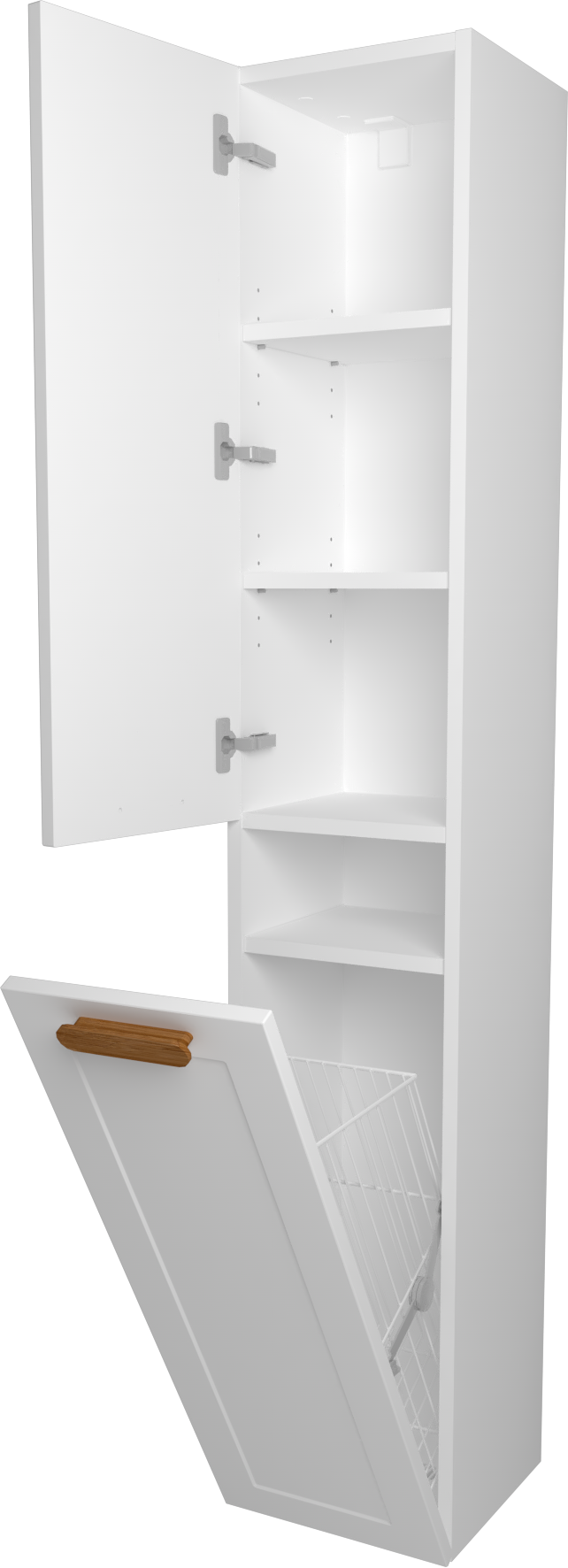 Villago Vysoká 300-500, košová je praktická doplnková skrinka, ktorá ponúka moderné a efektívne riešenie pre uskladnenie rôznych predmetov vo vašej kúpeľni. S výškou 170 cm a rozmermi 300 x 300 mm je ideálna pre menšie priestory, kde je potrebné efektívne využiť každý centimeter.