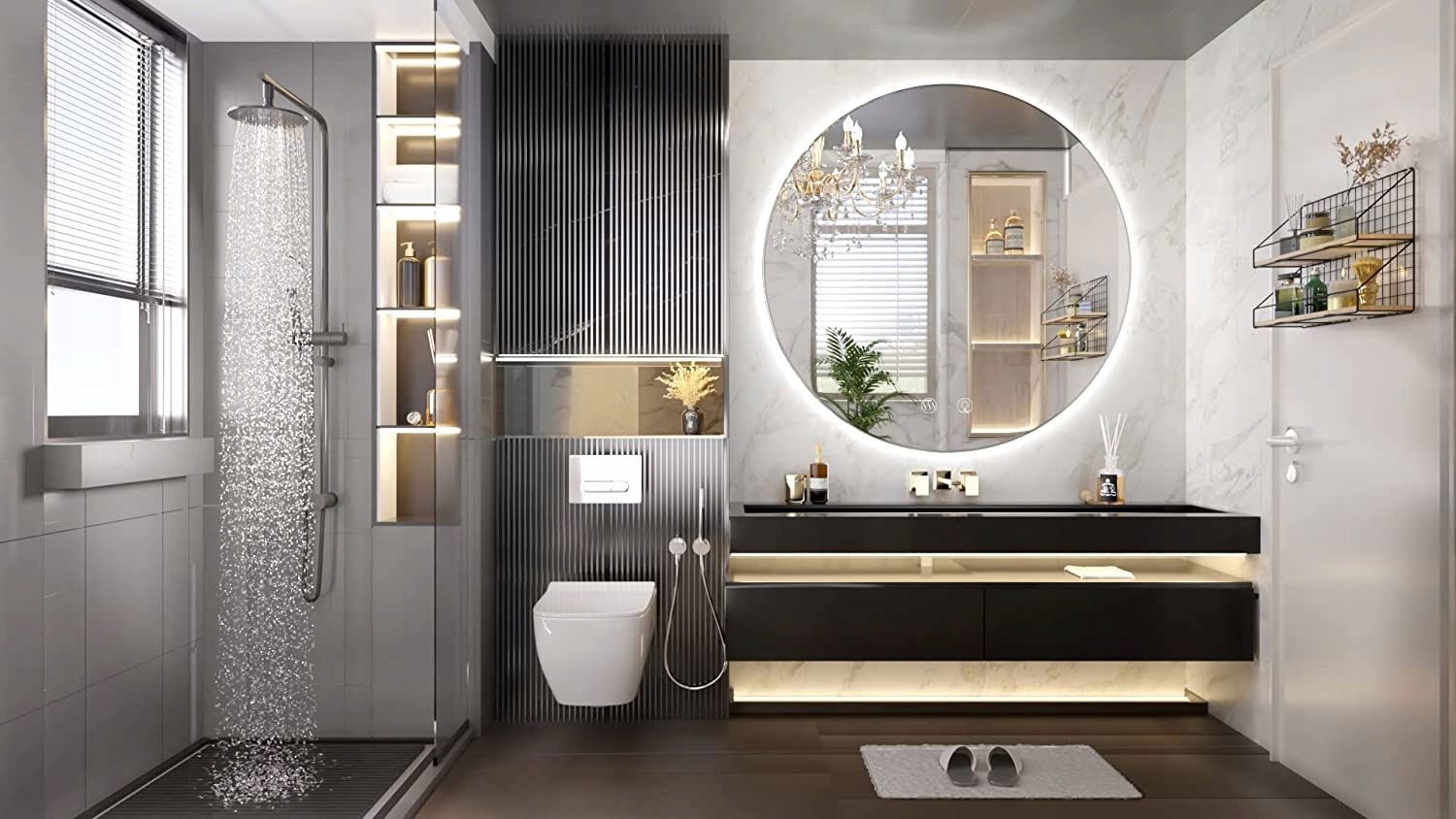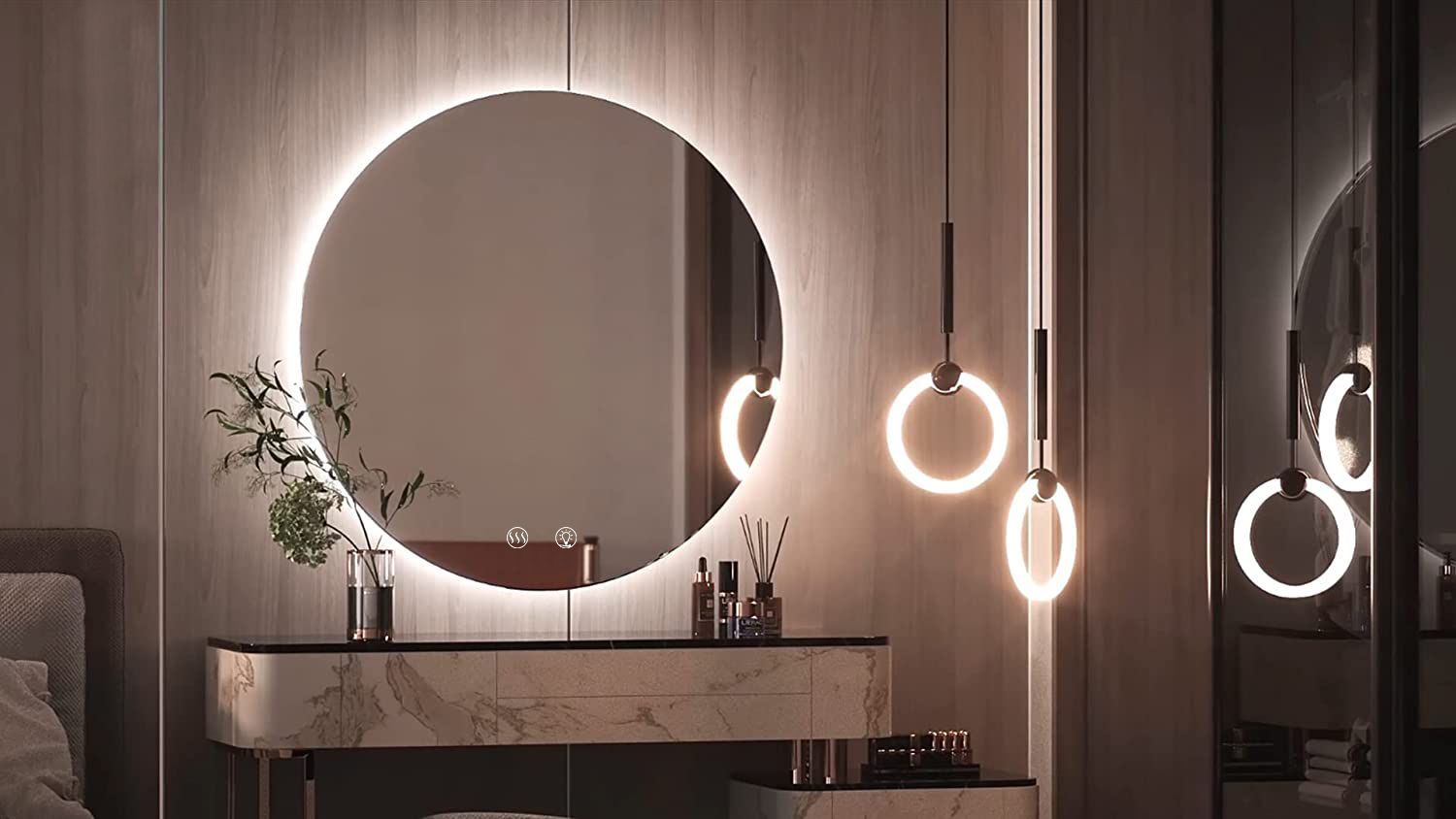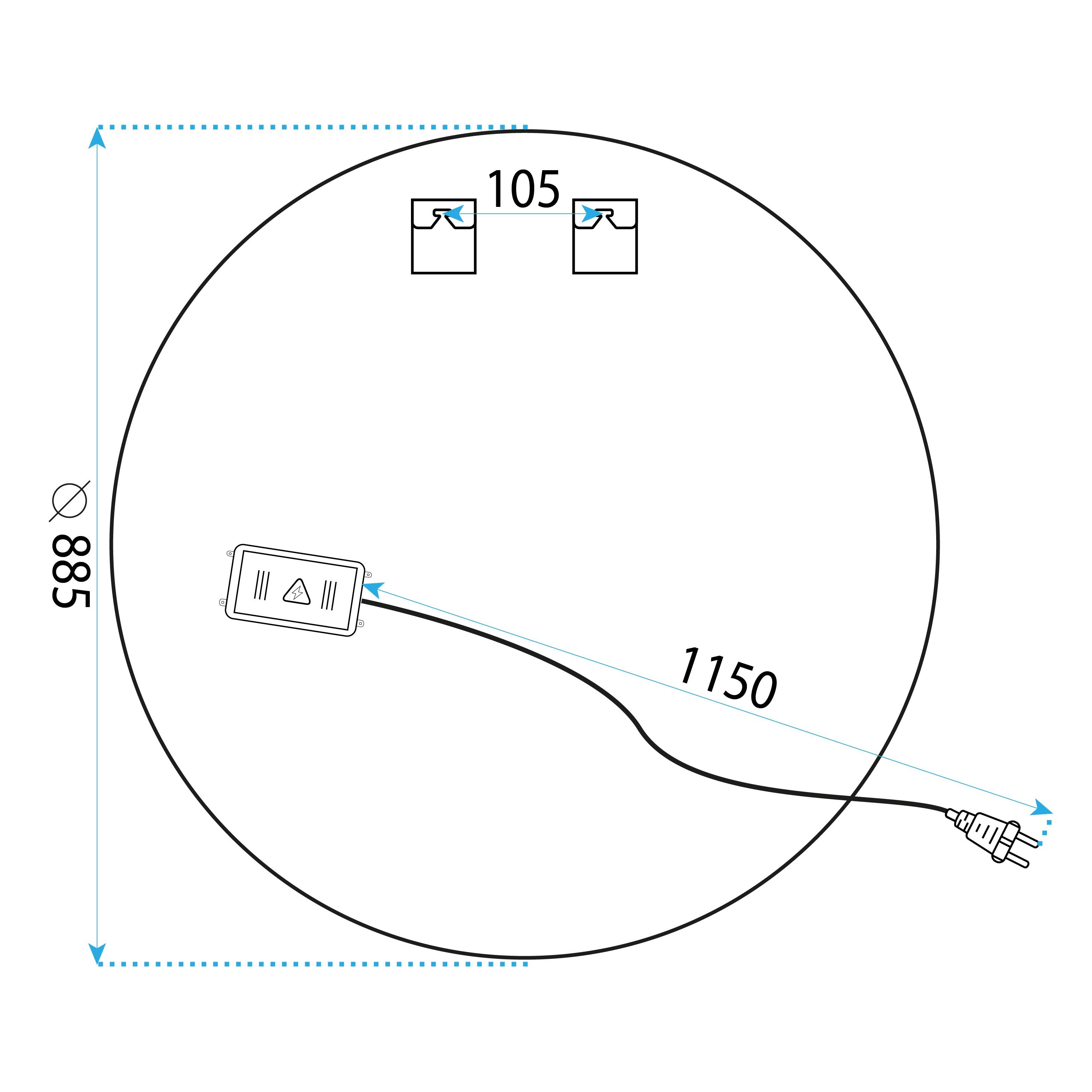 Okrągłe lustro z podświetleniem Led to idealna propozycja dla tych którzy cenią sobie wygodę użytkowania oraz nowoczesny design. Lustro jest wykonane z najwyższej jakości materiałów, idealnie się prezentuje oraz jest bardzo wytrzymałe. Posiada do wyboru trzy zmieniane dotykowo barwy światła Led – ciepła, neutralną i zimną oraz funkcję podgrzewania zapobiegającą zaparowaniu powierzchni. Przełącznik dotykowy umieszczony w tafli lustra podświetlany jest na niebiesko przy aktywności funkcji. Przewód zasilający w kolorze białym o długości 110cm. Grubość lustra: 4 mm