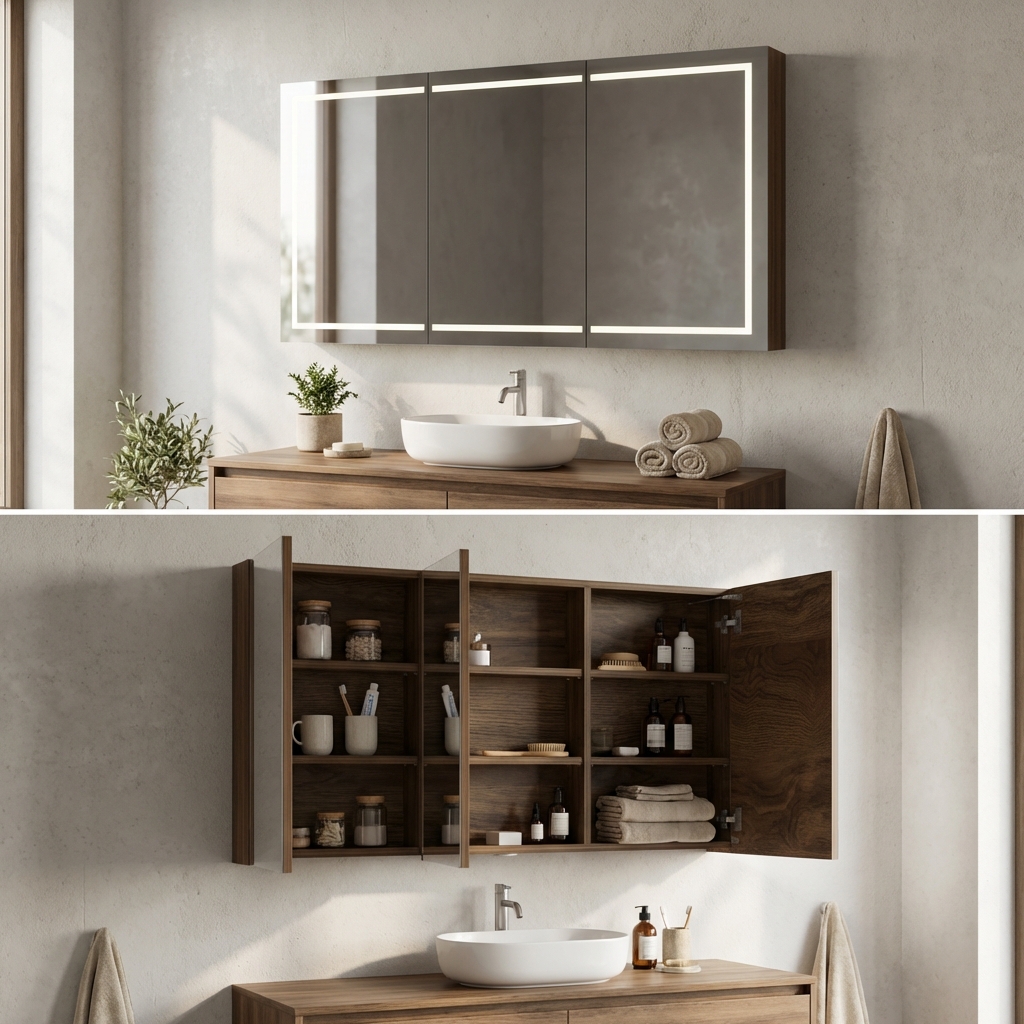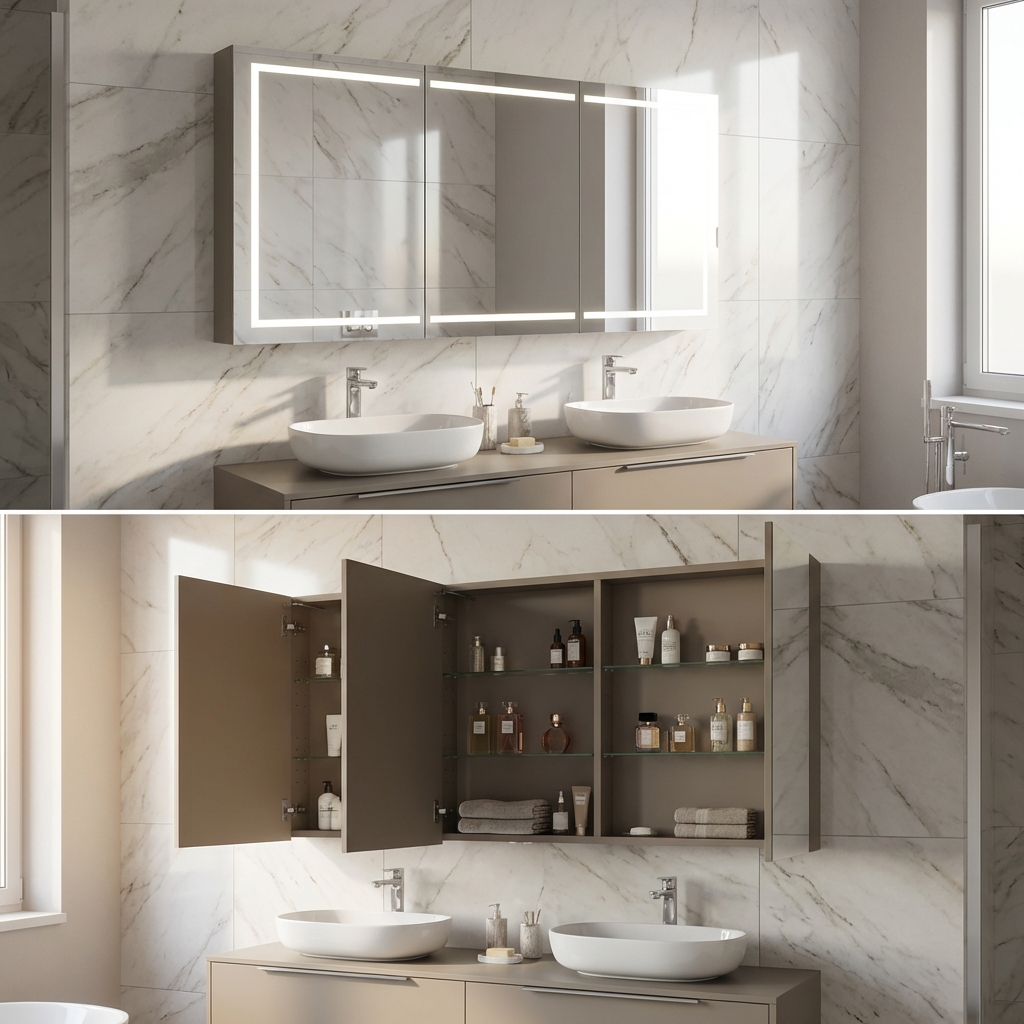 Toto zrkadlo je ideálne pre každého, kto hľadá kombináciu praktickosti a estetiky vo svojej kúpeľni. Trojdverové prevedenie ponúka dostatok úložného priestoru, a preto je skvelou voľbou pre rodiny i jednotlivcov. LED osvetlenie zaručuje kvalitné osvetlenie pri každodenných aktivitách, ako je líčenie alebo holenie. Zrkadlo sa montuje na stenu, čo šetrí priestor v kúpeľni a dodáva jej moderný vzhľad.