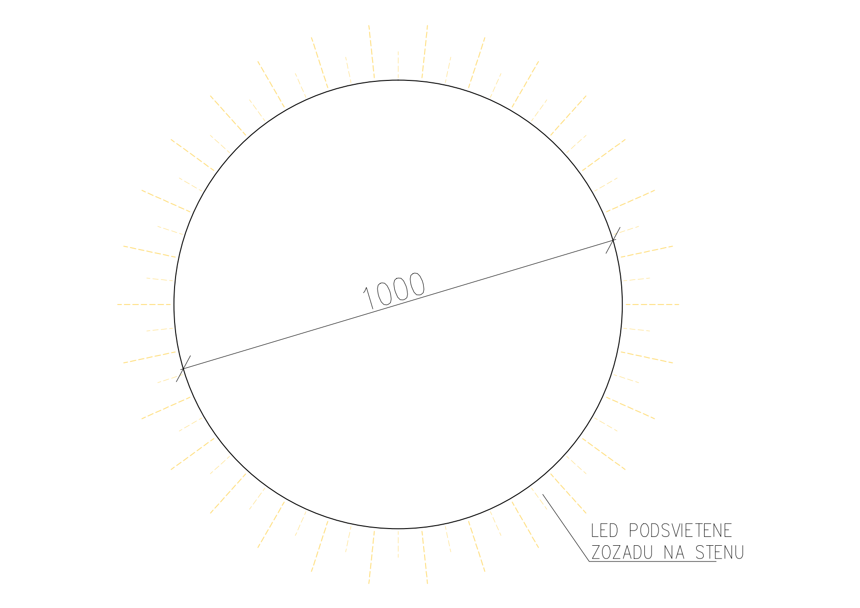 Kruhové zrkadlo s odstupeným zadným rámikom s nepriamim LED podsvietením. Rozmer na mieru do priemeru 800mm. Pripojenie na 230V.