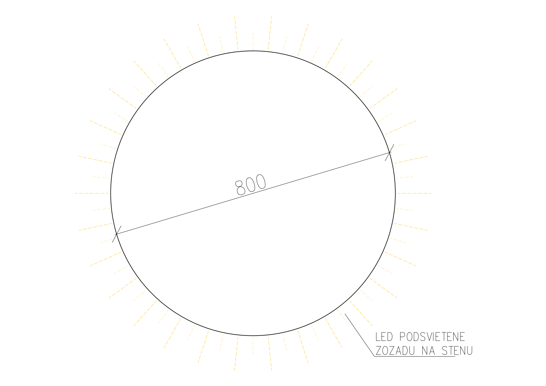 Kruhové zrkadlo s odstupeným zadným rámikom s nepriamim LED podsvietením. Rozmer na mieru do priemeru 800mm. Pripojenie na 230V.