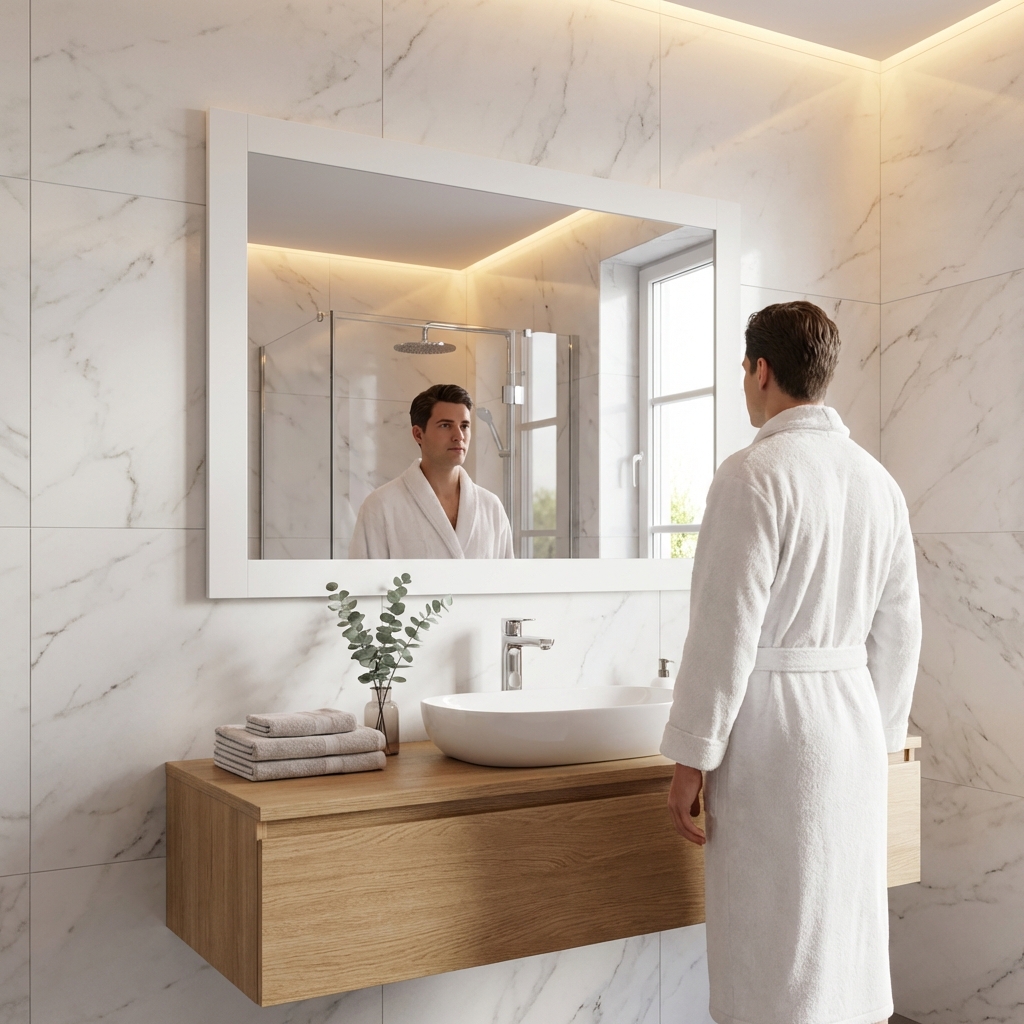 Zrkadlo TANJA je navrhnuté tak, aby spĺňalo potreby moderného zákazníka. Jeho veľké rozmery zabezpečujú dostatok odrazu, čo je obzvlášť užitočné pri každodennej príprave pred odchodom. Rám zrkadla prispieva k jeho odolnosti a vytvára elegantný vzhľad, ktorý sa hodí do rôznych štýlov interiéru. Navyše, zrkadlo môže opticky zväčšiť priestor, čo je výhodné najmä v menších miestnostiach. Vďaka svojej konštrukcii a kvalitným materiálom je zrkadlo TANJA ideálnym doplnkom do kúpeľne, ale aj do predsiene alebo obývacej izby.