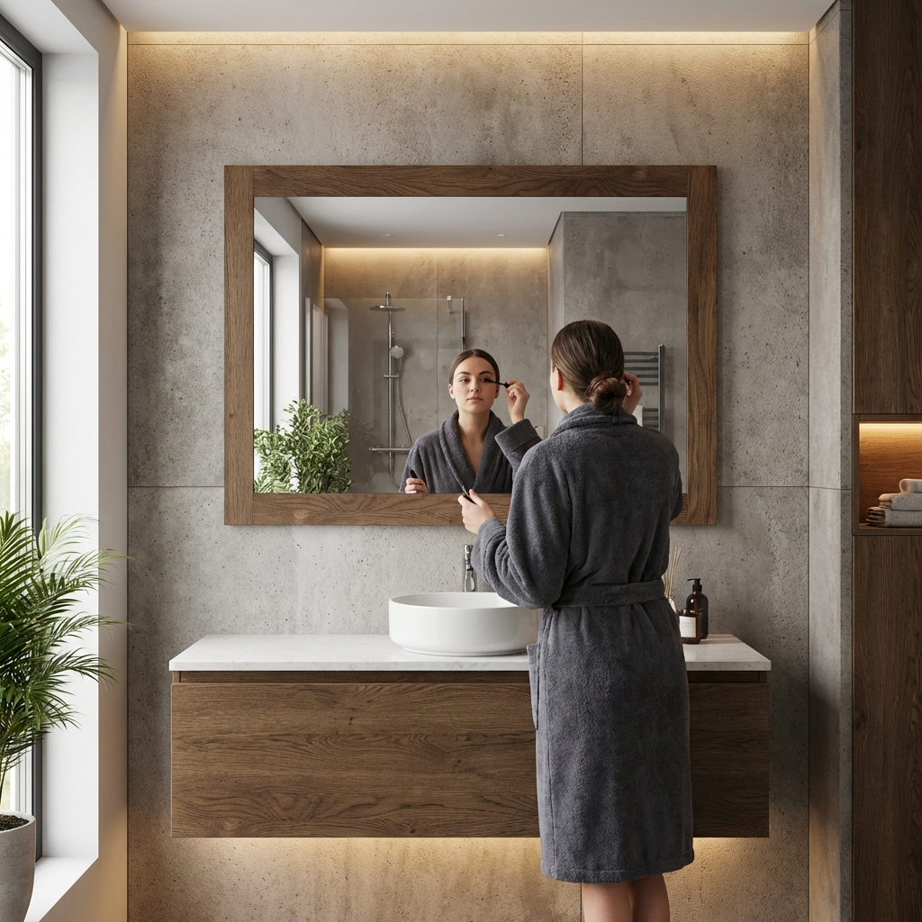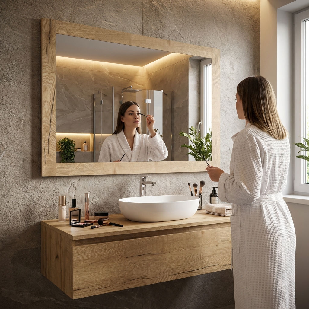 Zrkadlo TANJA je vyrobené z kvalitných materiálov, ktoré zaručujú dlhú životnosť a odolnosť voči vlhkosti. Rám je starostlivo navrhnutý tak, aby odolal každodennému používaniu a zároveň udržiaval svoj estetický vzhľad. Pre údržbu zrkadla odporúčame používať jemné čistiace prostriedky, aby sa predišlo poškriabaniu povrchu. Zrkadlo je dodávané v zloženom stave, čo uľahčuje jeho montáž na stenu.